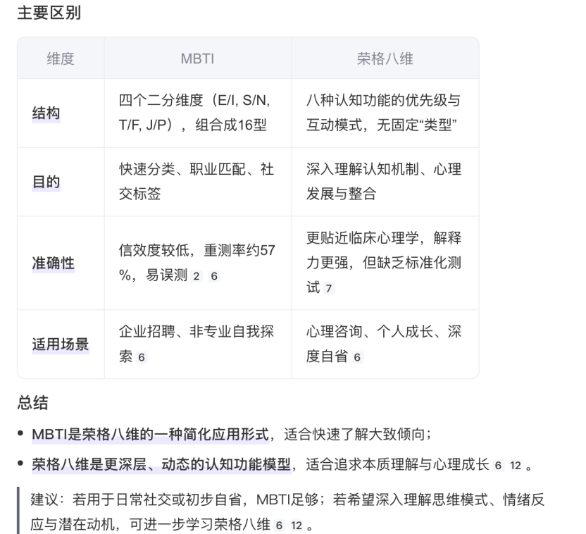 我去搜了一些基本内容,可以简单理解MBTI和荣格八维的区别: