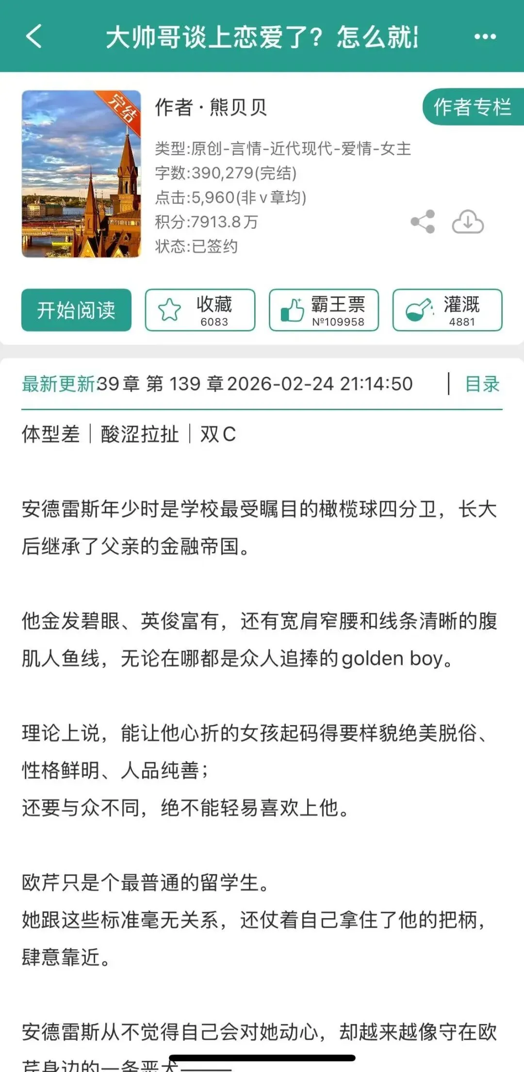 本文关键词:破镜重圆+追妻。还蛮以意外的一篇文章,因为心血来潮想看留学生跟金发碧眼大帅哥谈恋爱的故事,无意中搜到了这篇。作者还蛮会写的,不管是人物塑造上,还是情节发展上,又或者是人物成长线,都挺有意思的。女主是个苦命留学生,但性格炒鸡坚韧,而且敢于追求自己的爱,成长线也很完整;男主是个腹黑傲娇怪,明明超爱,但就是嘴硬。两个人的对手戏也很带感,非常有张力。