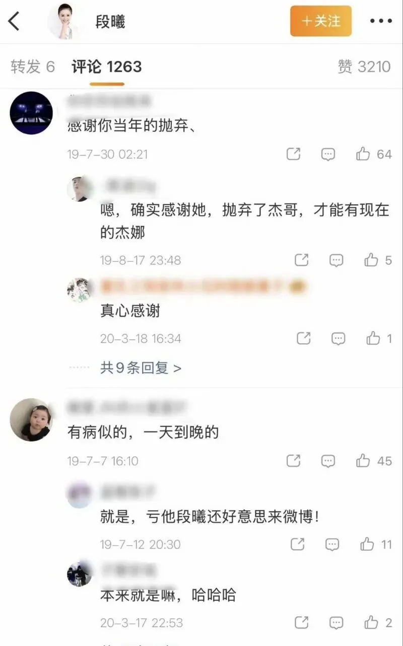 段曦这么多年的微博评论区里都是在骂她的,从未停止……