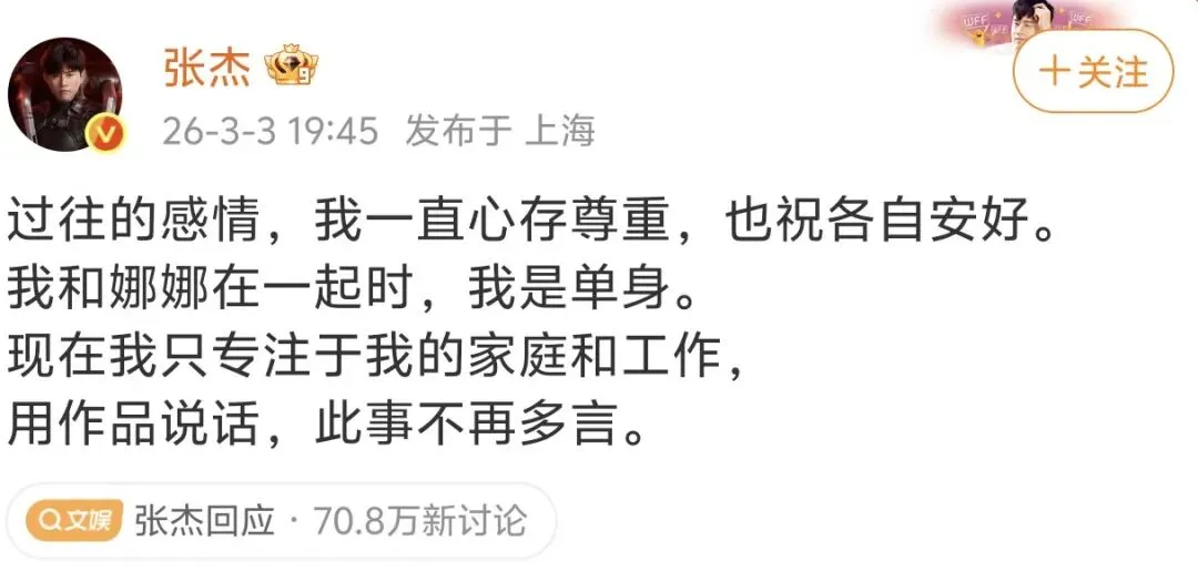 张杰回应: