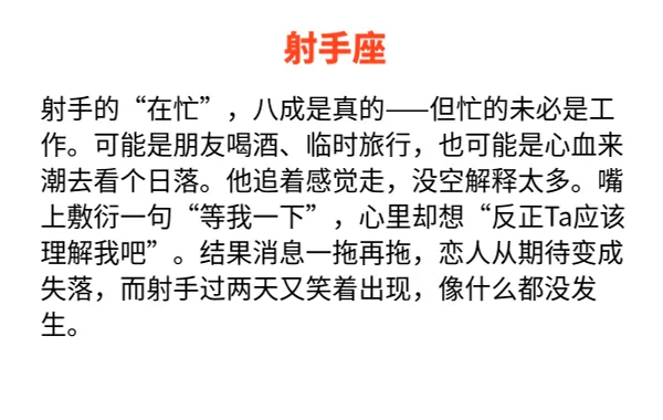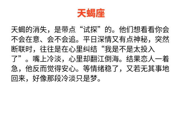 生活里总有那么几种恋爱,让人像坐过山车——前一天你们还甜到冒泡,后一天他就突然失踪。不是你哪儿做错了,也不是他没感情,只是有的人,天生爱自由、怕束缚。今天咱们就聊聊,哪些星座最容易在恋爱里“周三突然消失”。