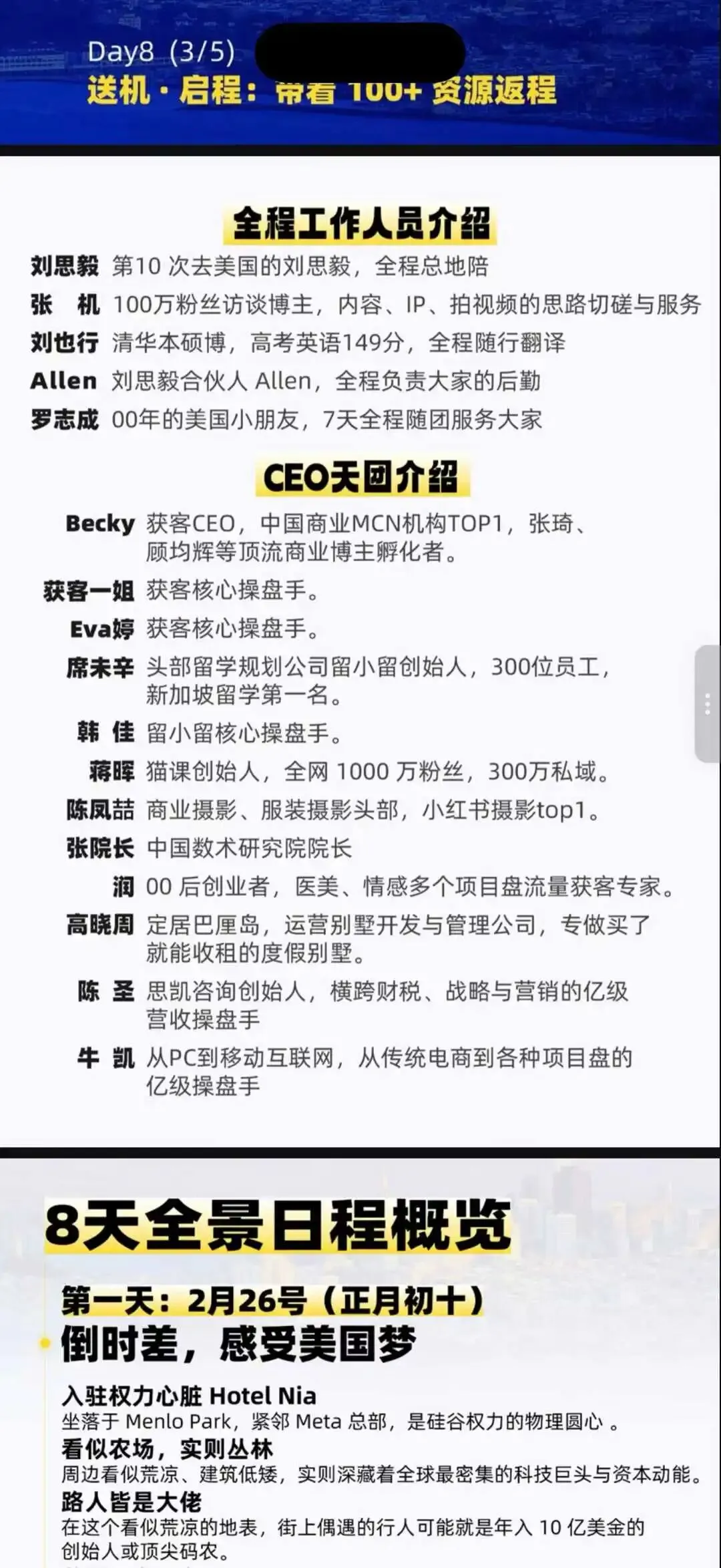 那你就算,硅谷旅行团赚的钱,是不是大于等于这个日收入,我后来算了,至少是持平的,那就应该做了,因为除了收入之外,赚钱的利润率至少也和日常业务相等,另外对于我们的主要业务,会员 + 私董会 + 我的 IP 业务,是一个非常重要的杠杆效应。