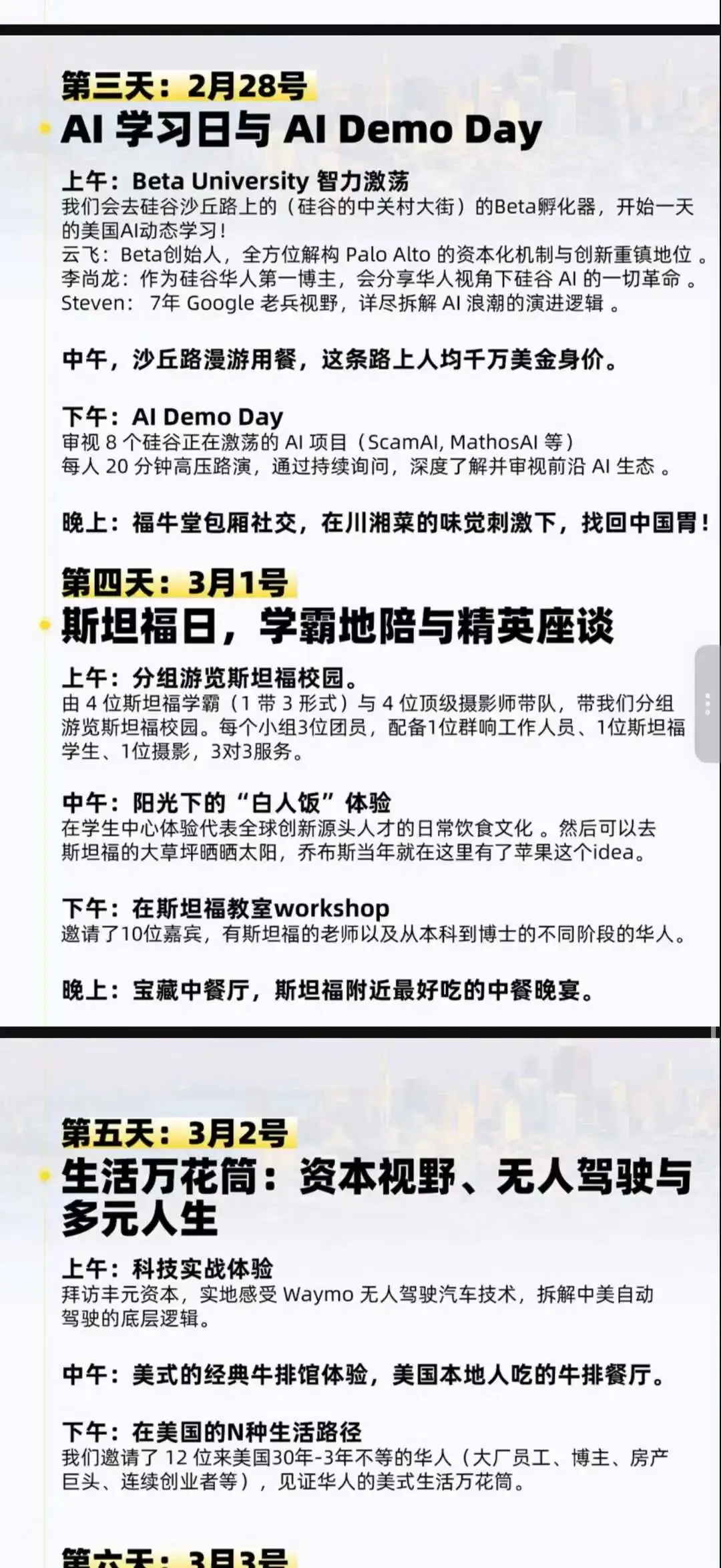 这两个老板的意见好,五一硅谷 IP 商业旅行团,核心 Slogan 就是,做 IP,去硅谷,聊 AI,聊大厂,聊斯坦福,聊美式创业与生活,被滋养之后,感觉心情舒服很多。