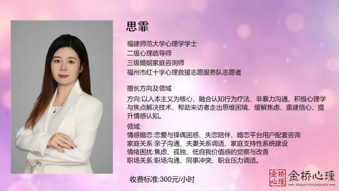 作为福建省心理咨询师协会会长单位,我们专注于心理咨询,为每一位客户提供个性化的心理健康服务。我们深知每个人的独特性,致力于为您提供最合适的心理支持。