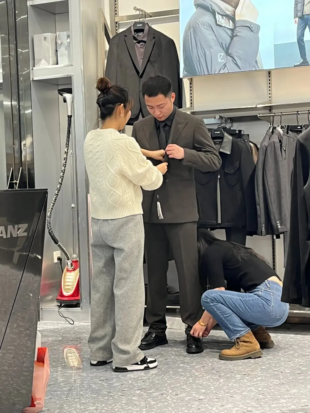给他挑西装。