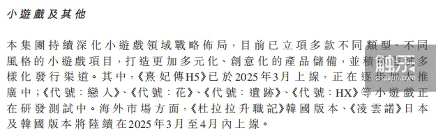 据2023年全年财报,小游戏被囊括于“创意类项目”中,当时,公司将主要聚焦于已上线APP游戏推出H5小游戏。而到了2024年,小游戏被单独列为小标题,友谊时光“已立项多款不同类型、不同风格的小游戏项目”。