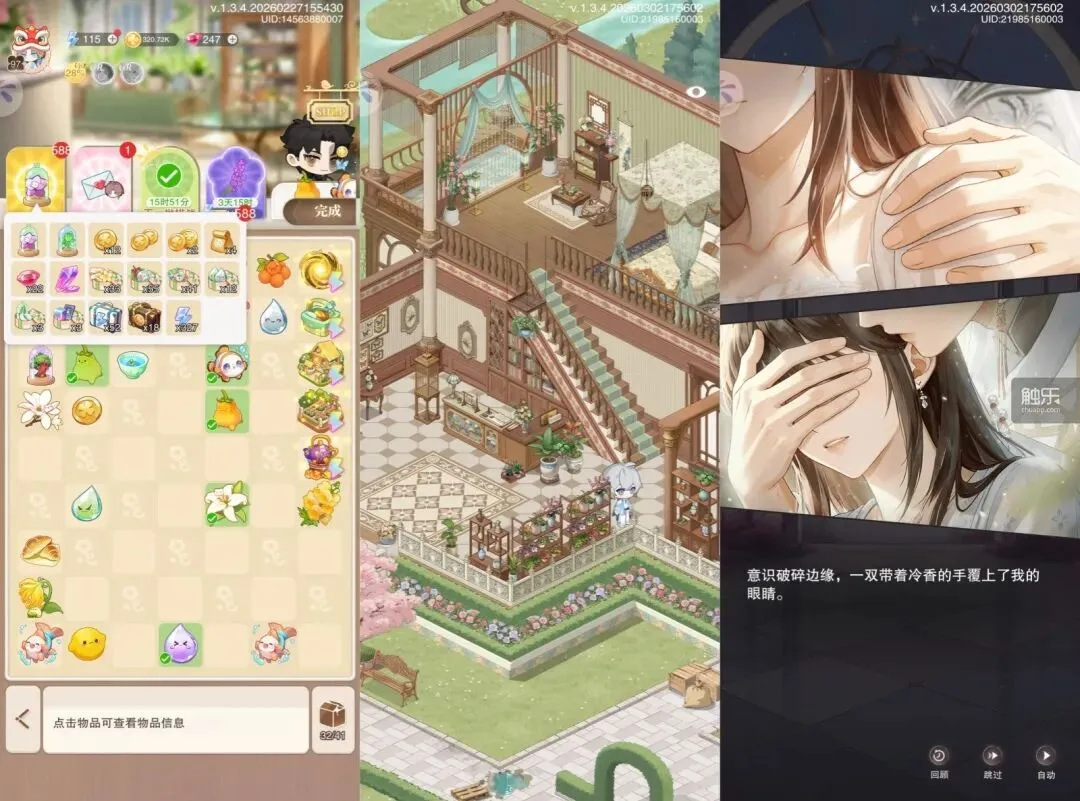 在二合品类中,这种玩法搭配较有创意、也具有付费潜力。对于当下愈发细分的女性向游戏市场来说,一款加入恋爱养成玩法的二合游戏,看起来也相当吸引眼球。