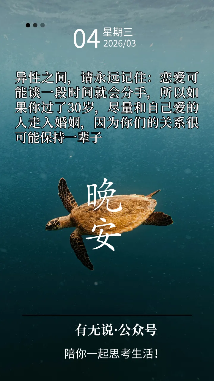 异性之间,请永远记住:恋爱可能谈一段时间就会分手,所以如果你过了30岁,尽量和自己爱的人走入婚姻,因为你们的关系很可能保持一辈子