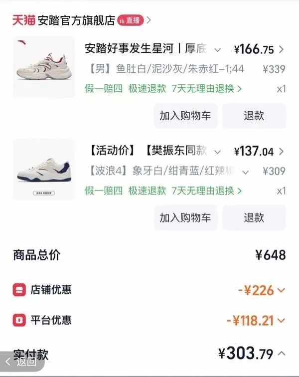 一份安踏鞋子的购物订单引发了鞋圈大讨论。发帖人感叹国产鞋真香,买两双都抵不上大牌一双的价格。不过评论区针对鞋子质量产生了分歧:有人觉得现在运动鞋鞋底不耐磨,穿几个月就得为了安全性换掉;也有人现身说法,表示耐克李宁该开胶照样开胶。说到底,与其花大价钱买所谓的“耐穿”,不如买便宜的随时换新,主打一个喜新厌旧不心疼。