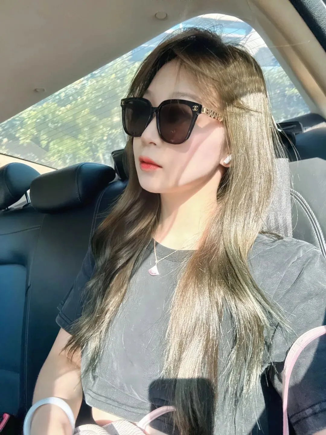 怎么有人能把基础款黑T穿得这么有氛围感!真的不是夸张,阳光一打下来,整个人那种慵懒劲儿就出来了。不是那种用力过猛的精致,是随手抓一件衣服出门都好看的松弛感。大框墨镜一戴,脸显得只有巴掌大,配上这头亚麻色的长发,清冷又随意。坐在车后座,光影落在黑T恤上,质感一下就拉满了。有时候真的不需要多复杂的堆砌,简简单单的黑色加一点金饰点缀,这种“生人勿近”的高级感就稳稳拿捏了。看着就对了的感觉,大概就是这样来的。