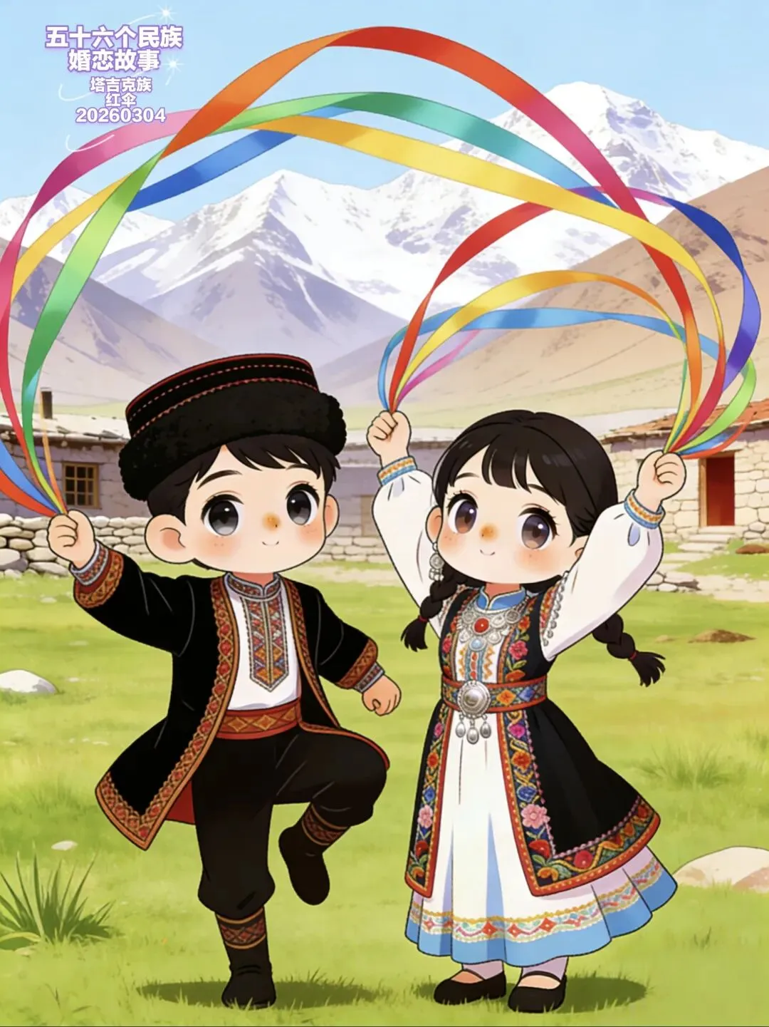 库尔班骑着马,看着挡在面前的彩绸,笑着对身边的伴郎说:“今天,我不仅要闯过这彩绸阵,还要把我的阿依古丽娶回家。”他翻身下马,走到彩绸前,用塔吉克族特有的歌谣,唱出了对阿依古丽的爱意。悠扬的歌声在草原上回荡,姑娘们听着听着,都红了脸,终于笑着让开了路。