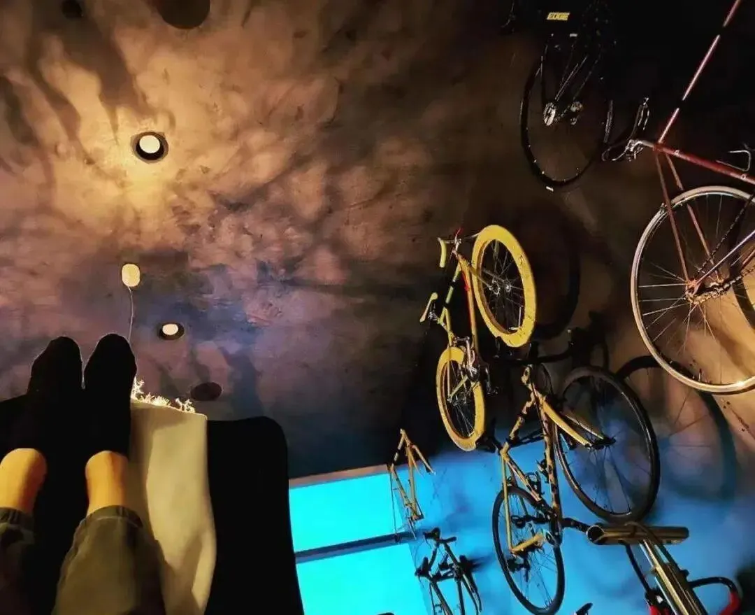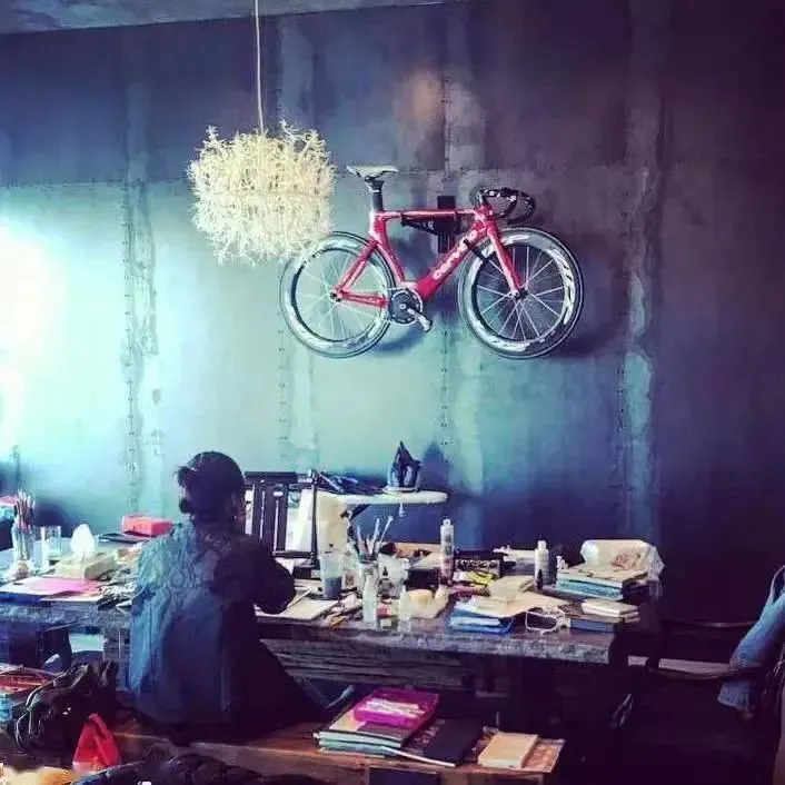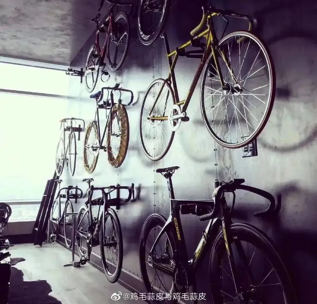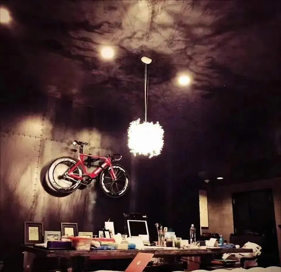 黑色的房间,自行车一排排上墙,这是徐静蕾亲手打造的家。看着很有艺术气息,但是也会感觉环境比较压抑。