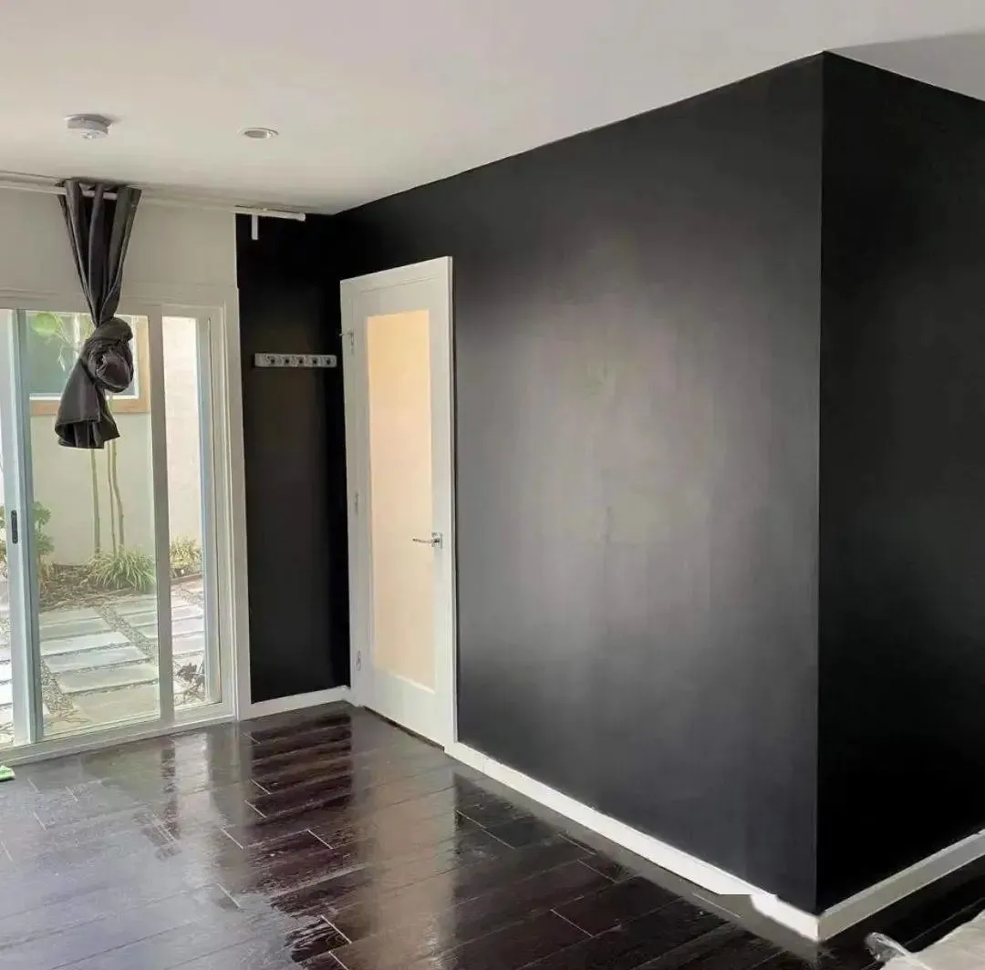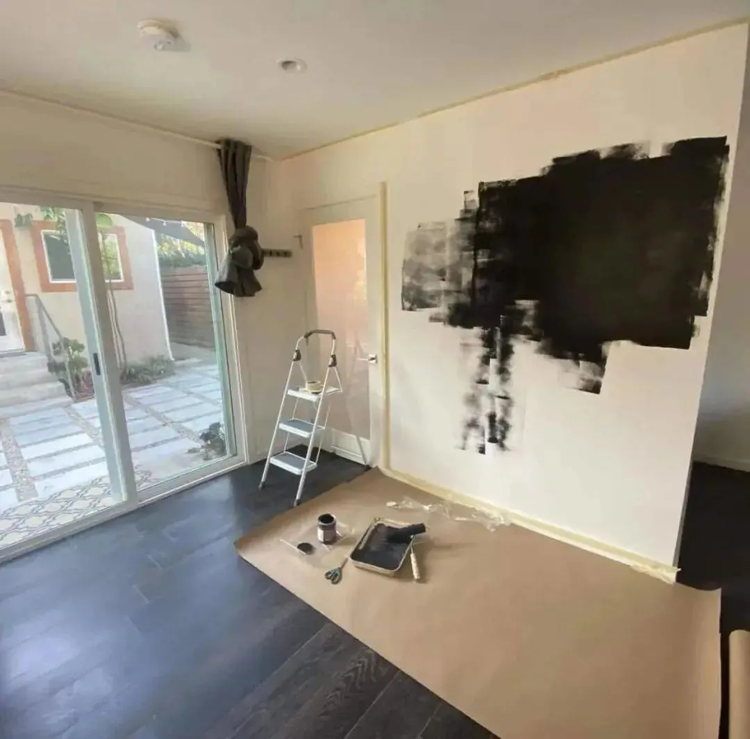 为了打造暗色系的理想之家,徐静蕾亲自做粉刷匠,把墙壁刷成全黑。