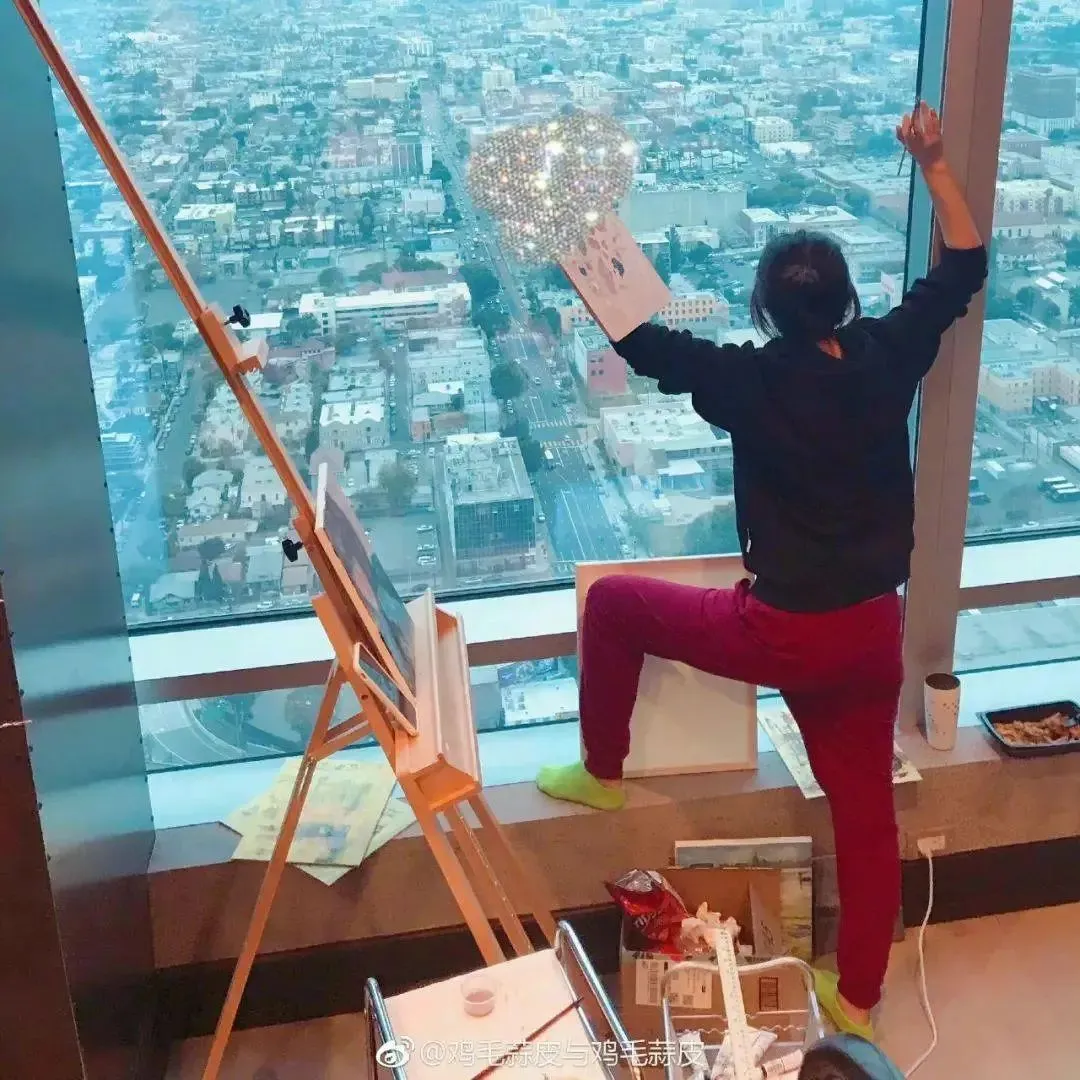 有一面墙是落地窗,在这里能看到很多城市的风景。徐静没事的时候喜欢在落地窗前借着光线进行画画创造。