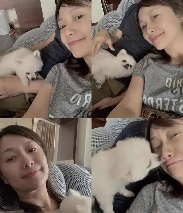 照片中,徐静蕾与狗子以及露出衣角的黄立行看着很是温馨幸福。