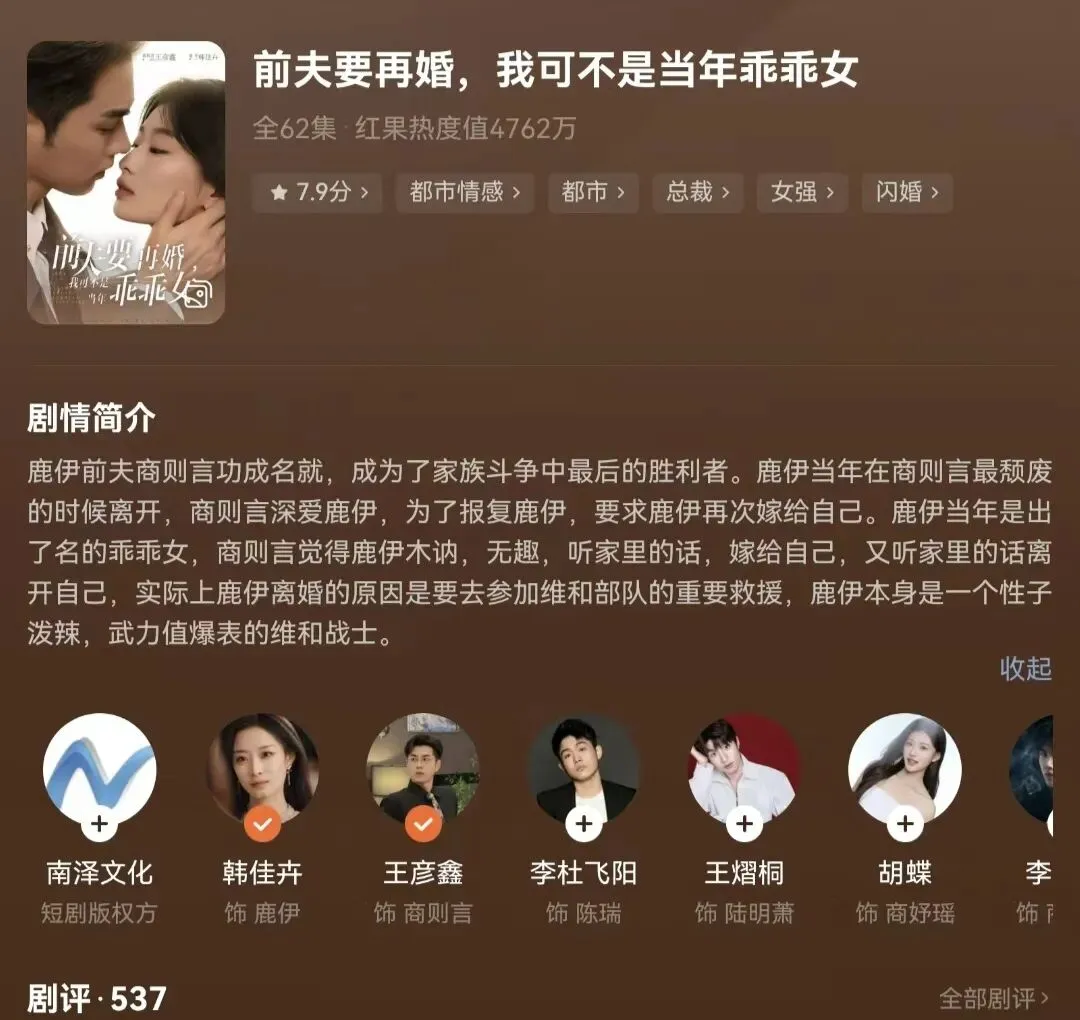 演员方面 王彦鑫×韩佳卉,两个人在我这都是有好感度加分的。这次算首搭,效果还行。 韩的 我都挺喜欢的。 王的 也都很不错。 综合评分 颜值在线,业务OK,剧情OK。 7.5分!推荐- |