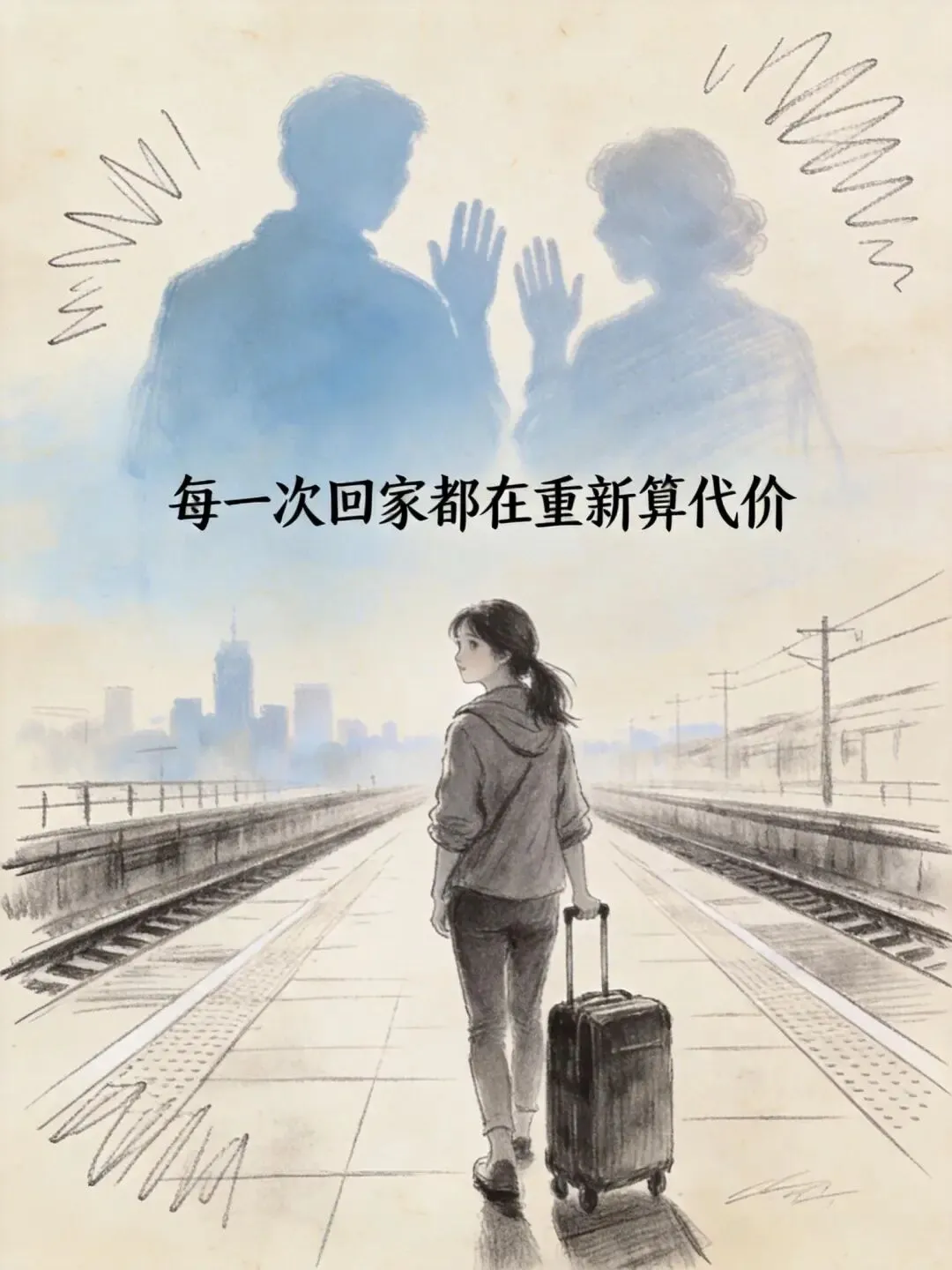 我有个朋友嫁得挺远的,今年过年她就在算账。抢票、请假、算孩子和婆家、算要不要多请两天假。回不去的时候,视频里爸妈说「没事没事你们忙」,挂掉之后她在那难受。