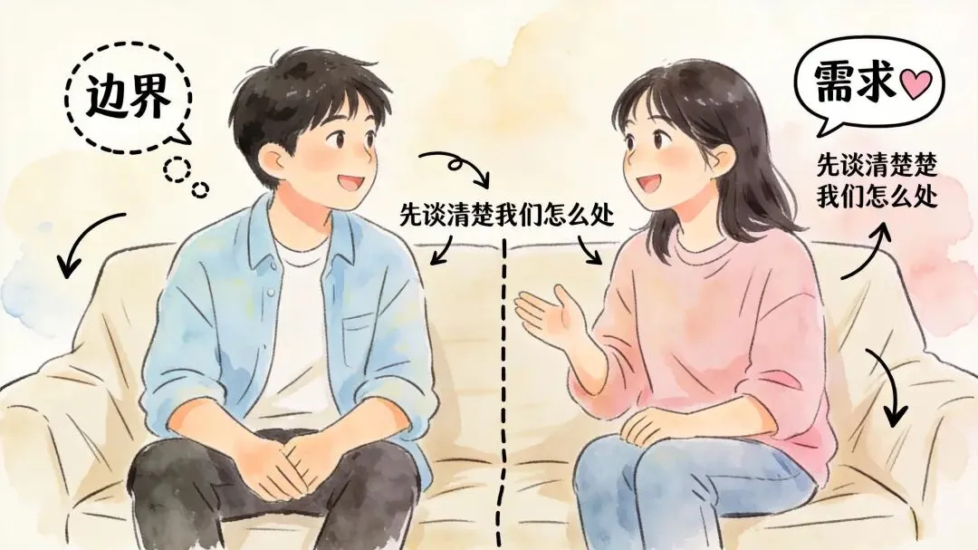 我观察到一个现象:很多年轻人不再把「恋爱—结婚」当成一条必走的直线。先处着、先磨合、先谈好边界和节奏。谁需要多少独处时间、以后住哪儿、要不要孩子、钱怎么管,能聊的尽量聊在前面。