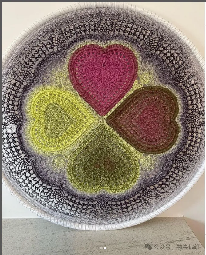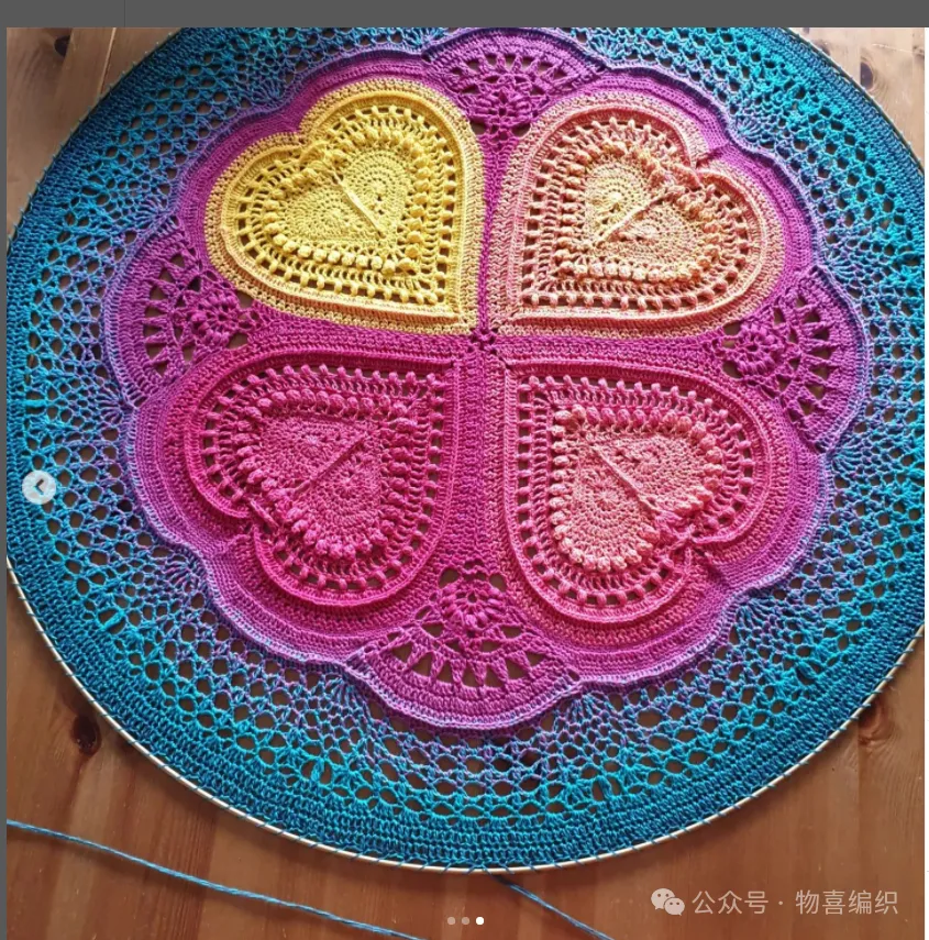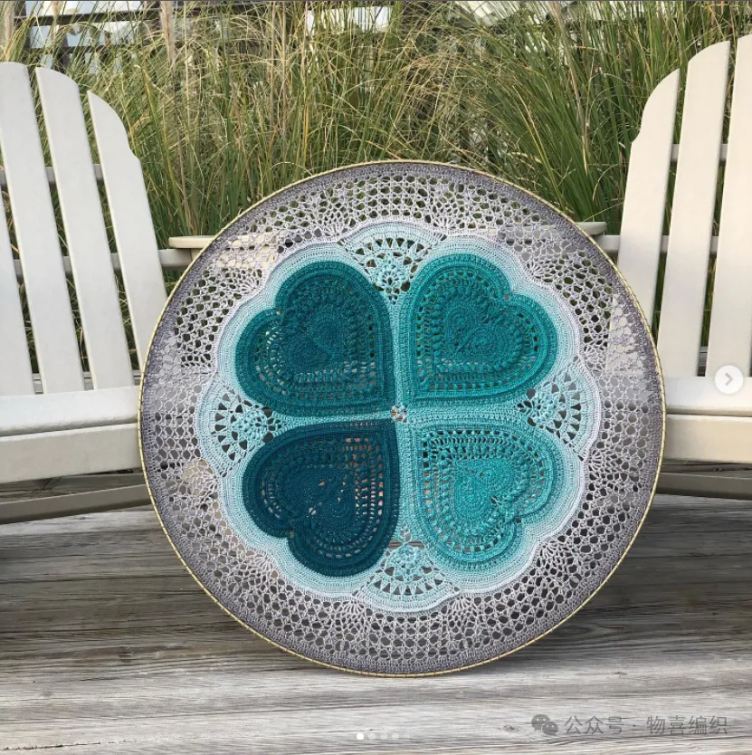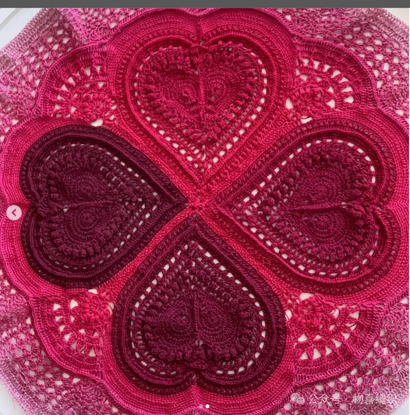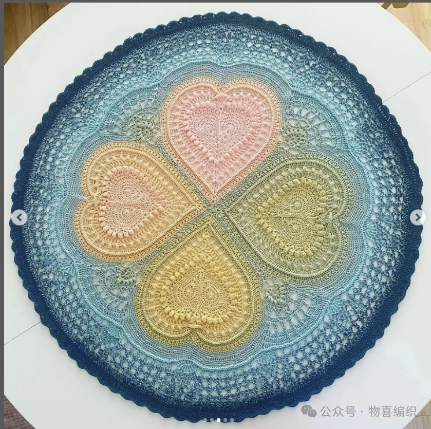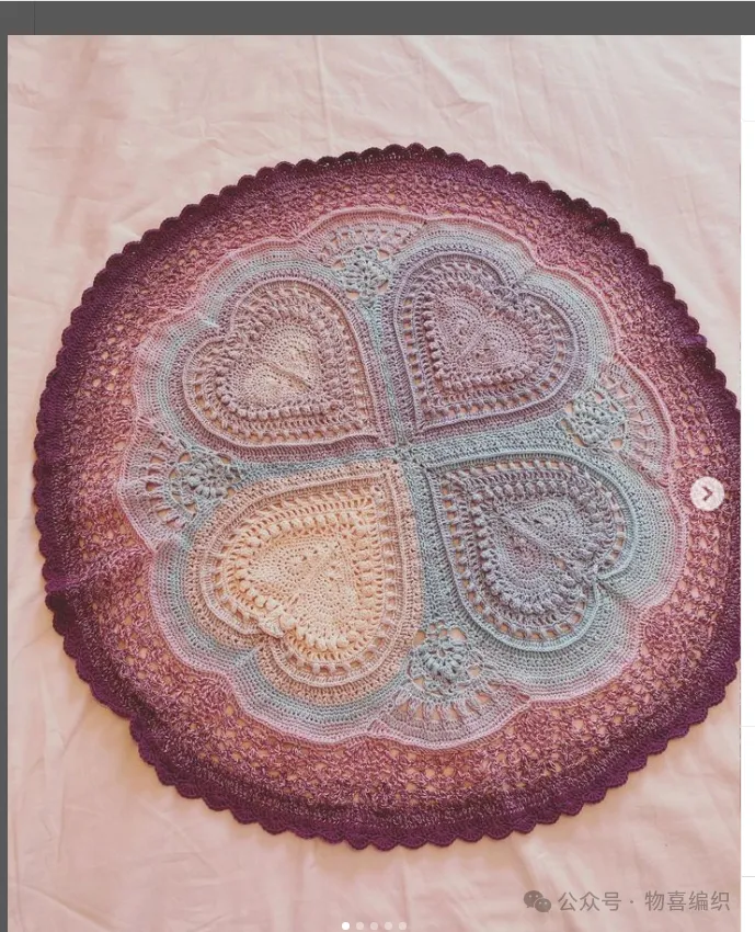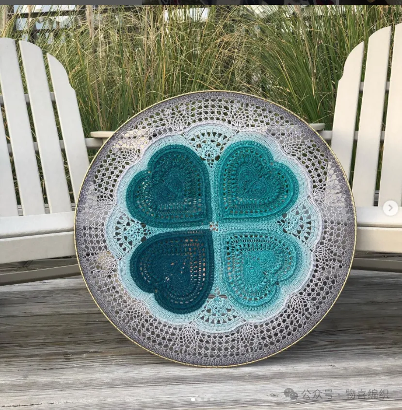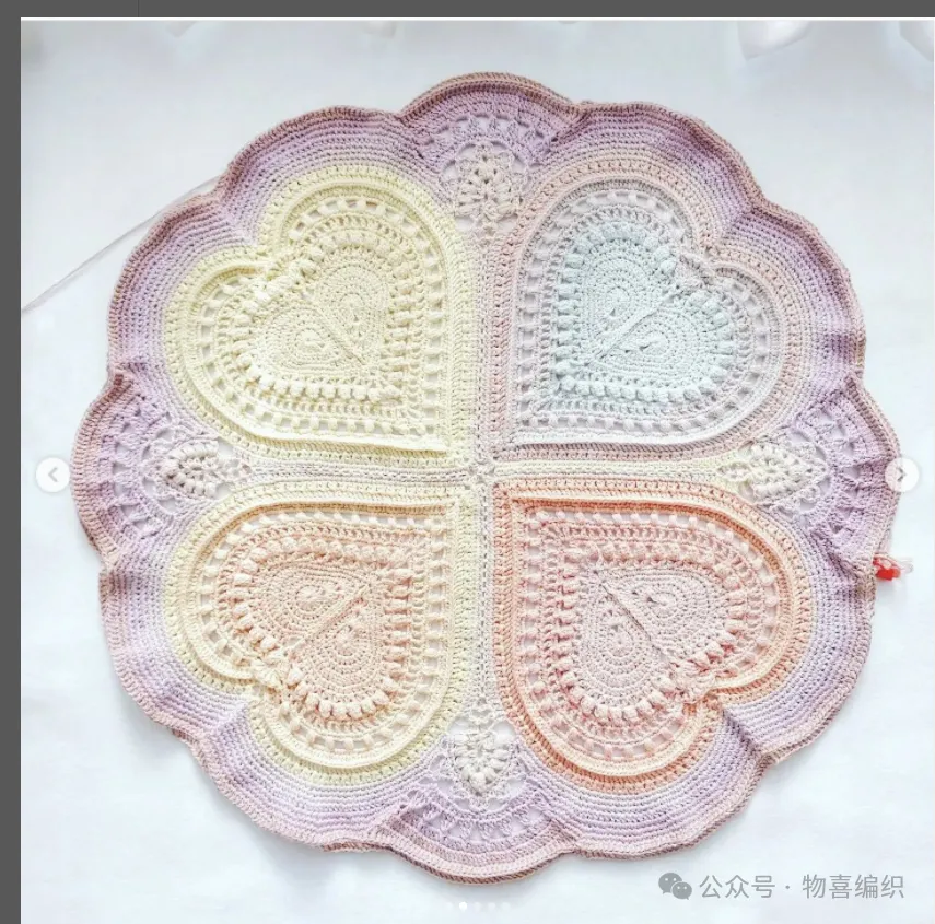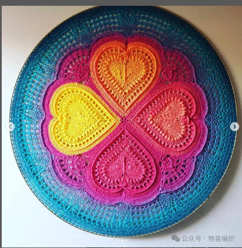 物喜恋爱花园曼陀罗垫子(又名四颗心,画了中文符号图解买线送)。潘多拉最适合钩各种小垫子,一团一个有剩余。买线进群玩。