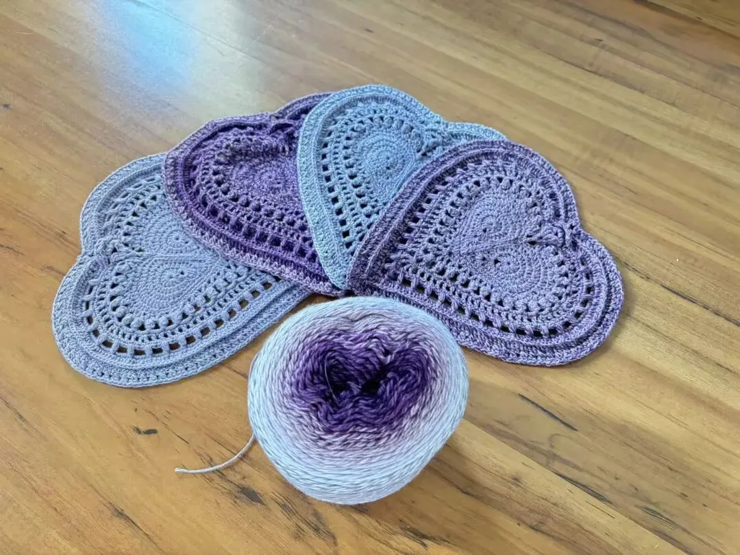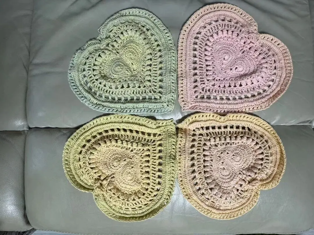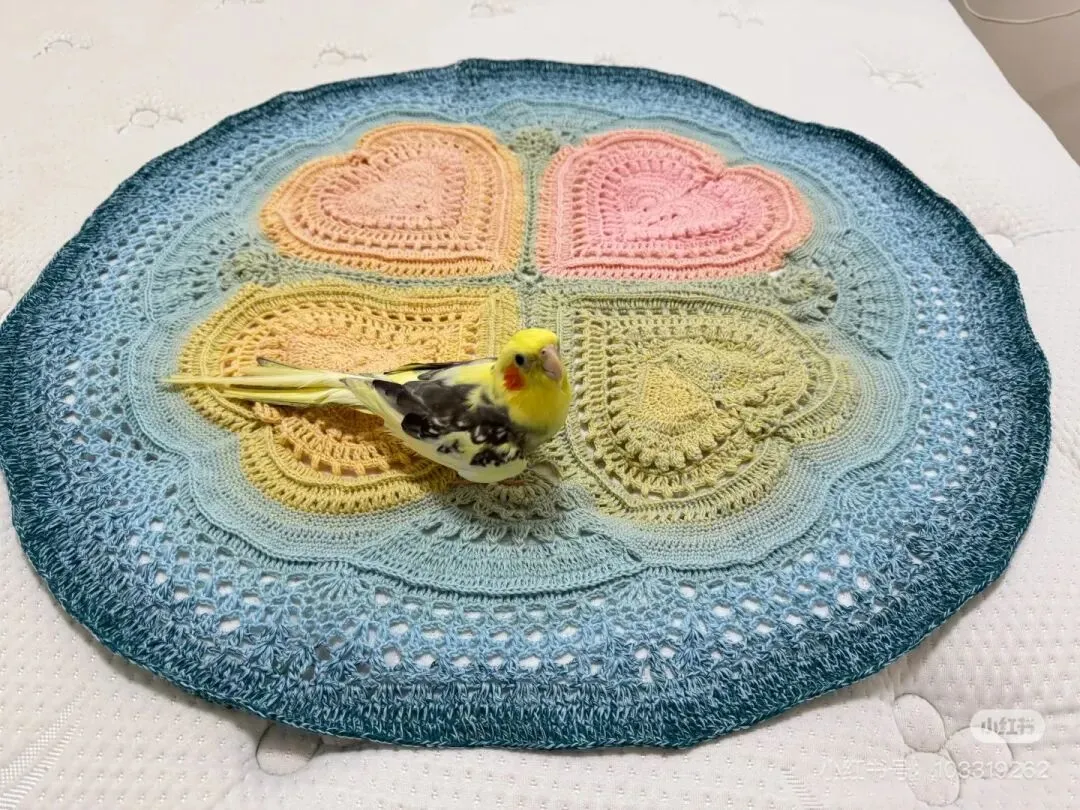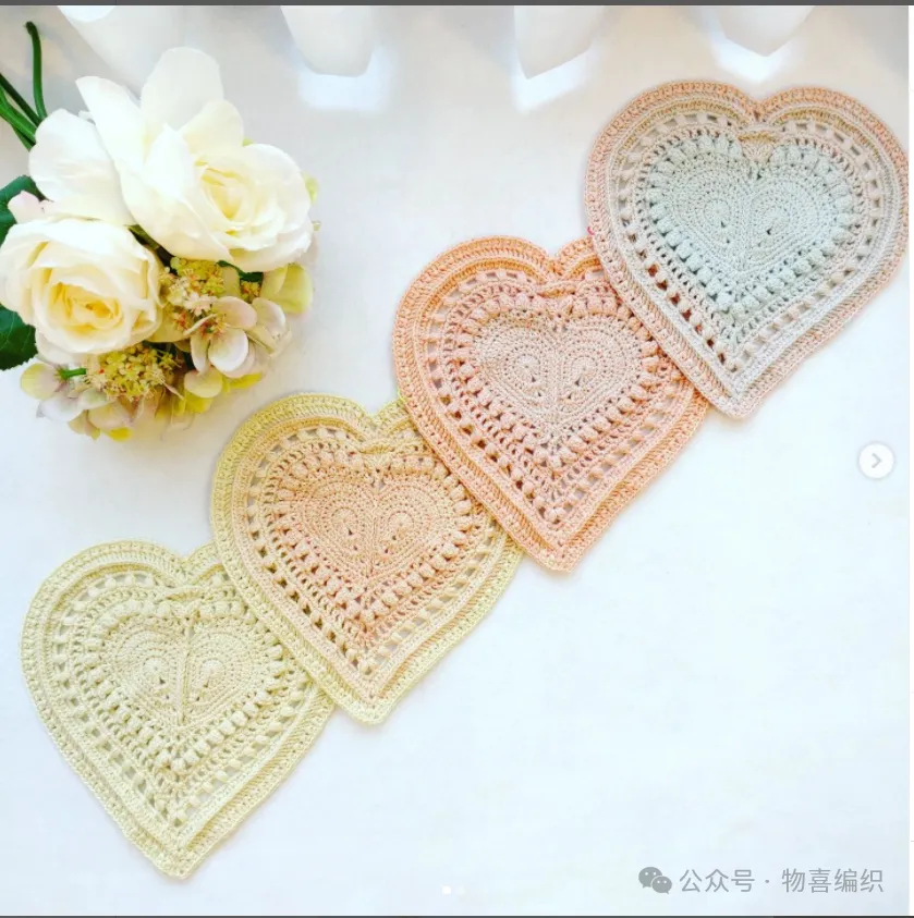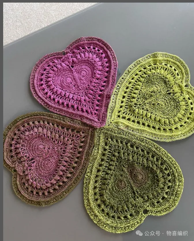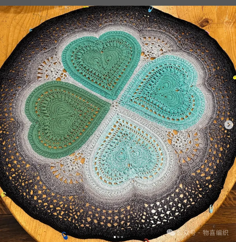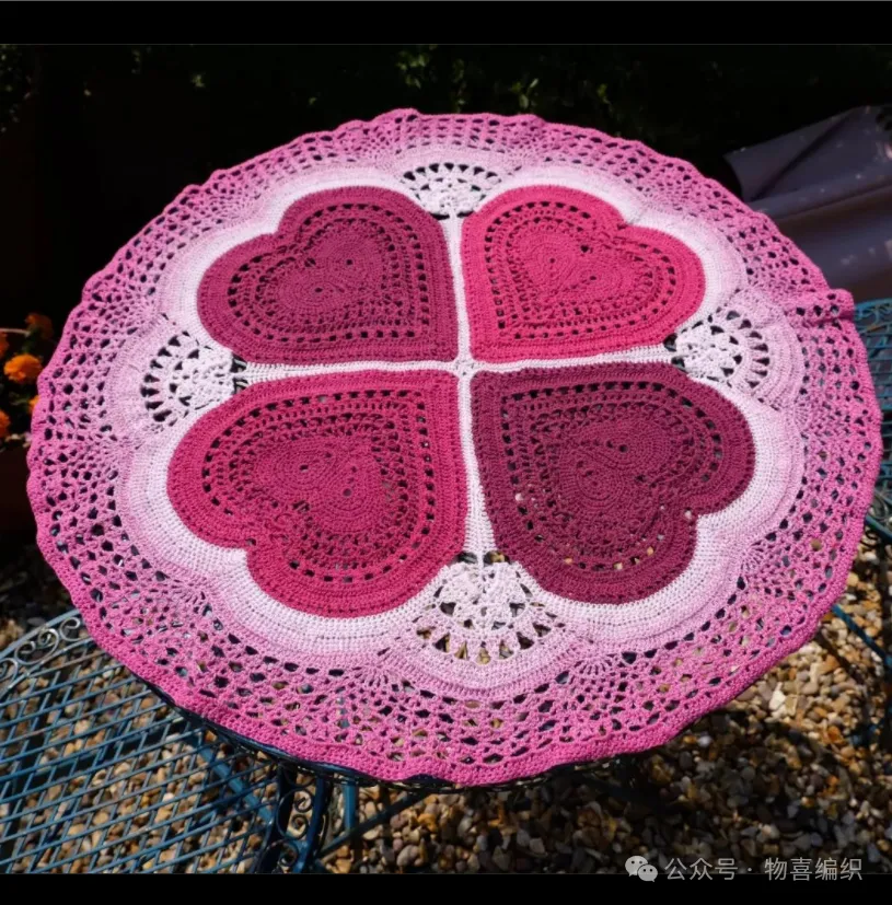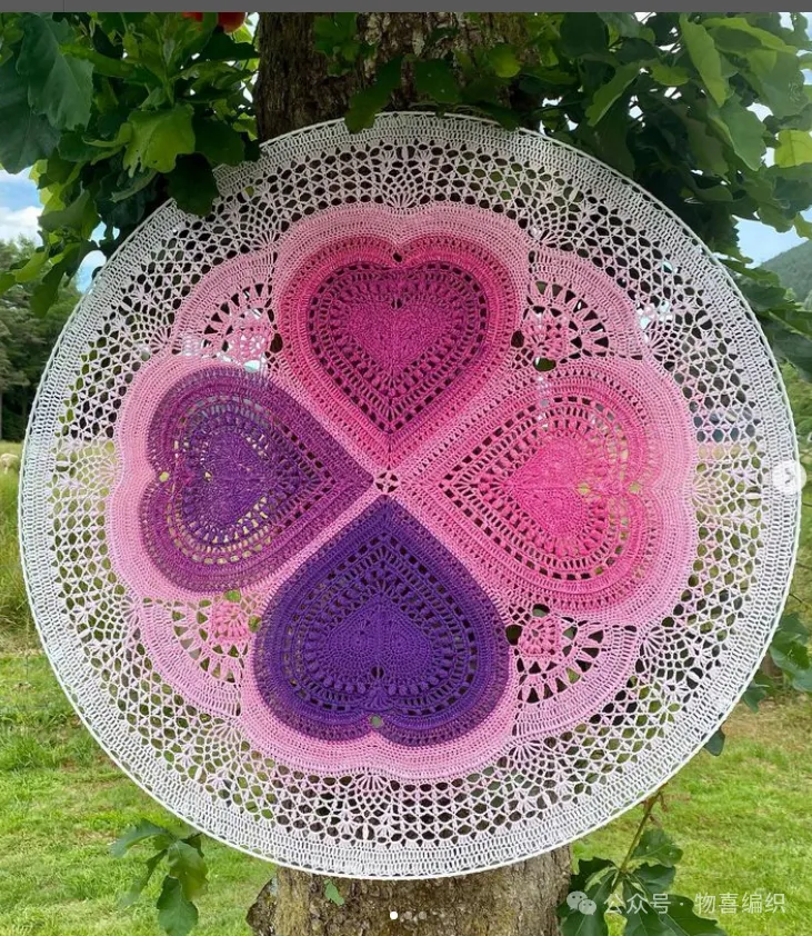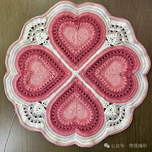 物喜恋爱花园曼陀罗垫子(又名四颗心,画了中文符号图解买线送)。潘多拉最适合钩各种小垫子,一团一个有剩余。买线进群玩。