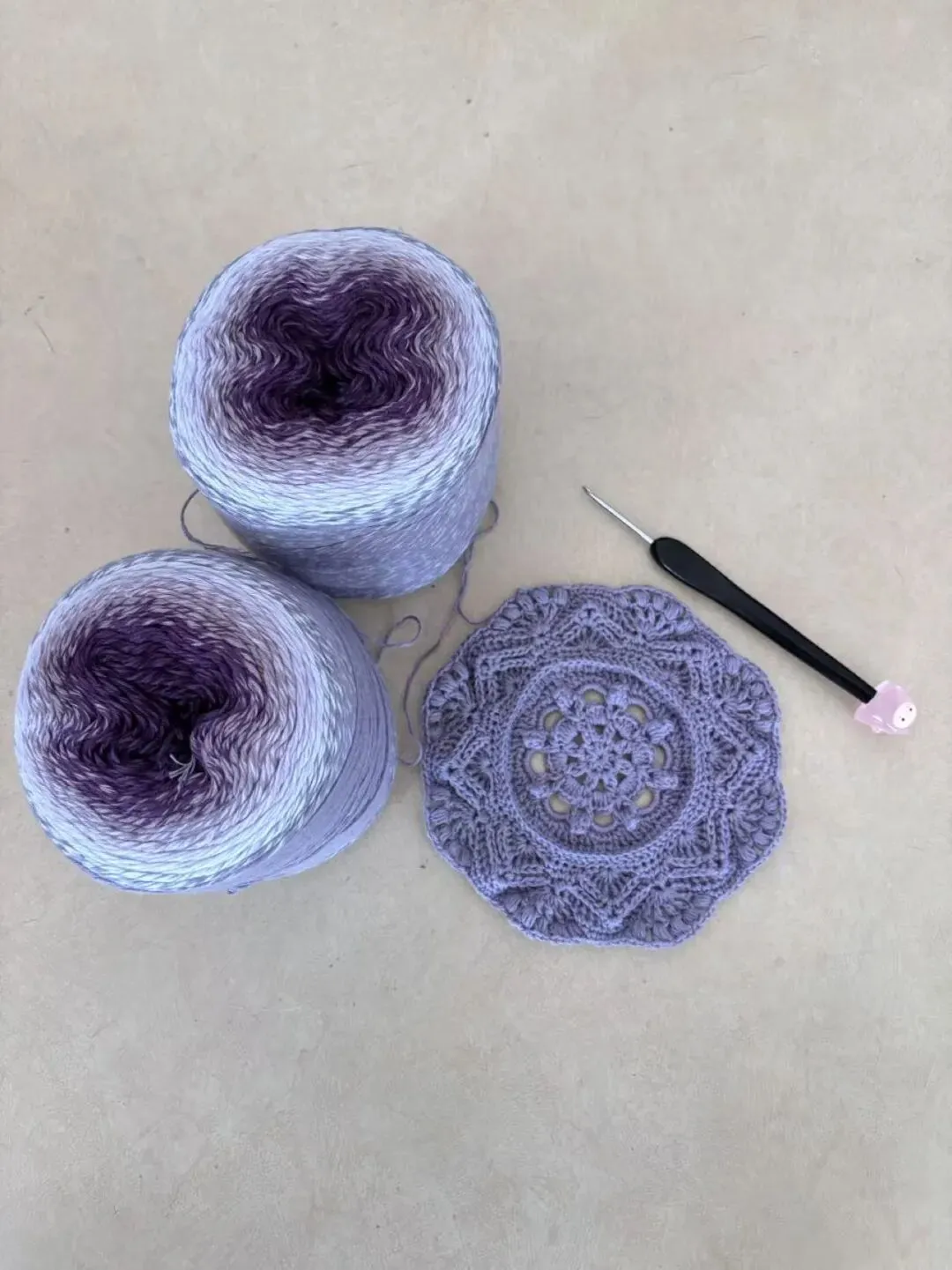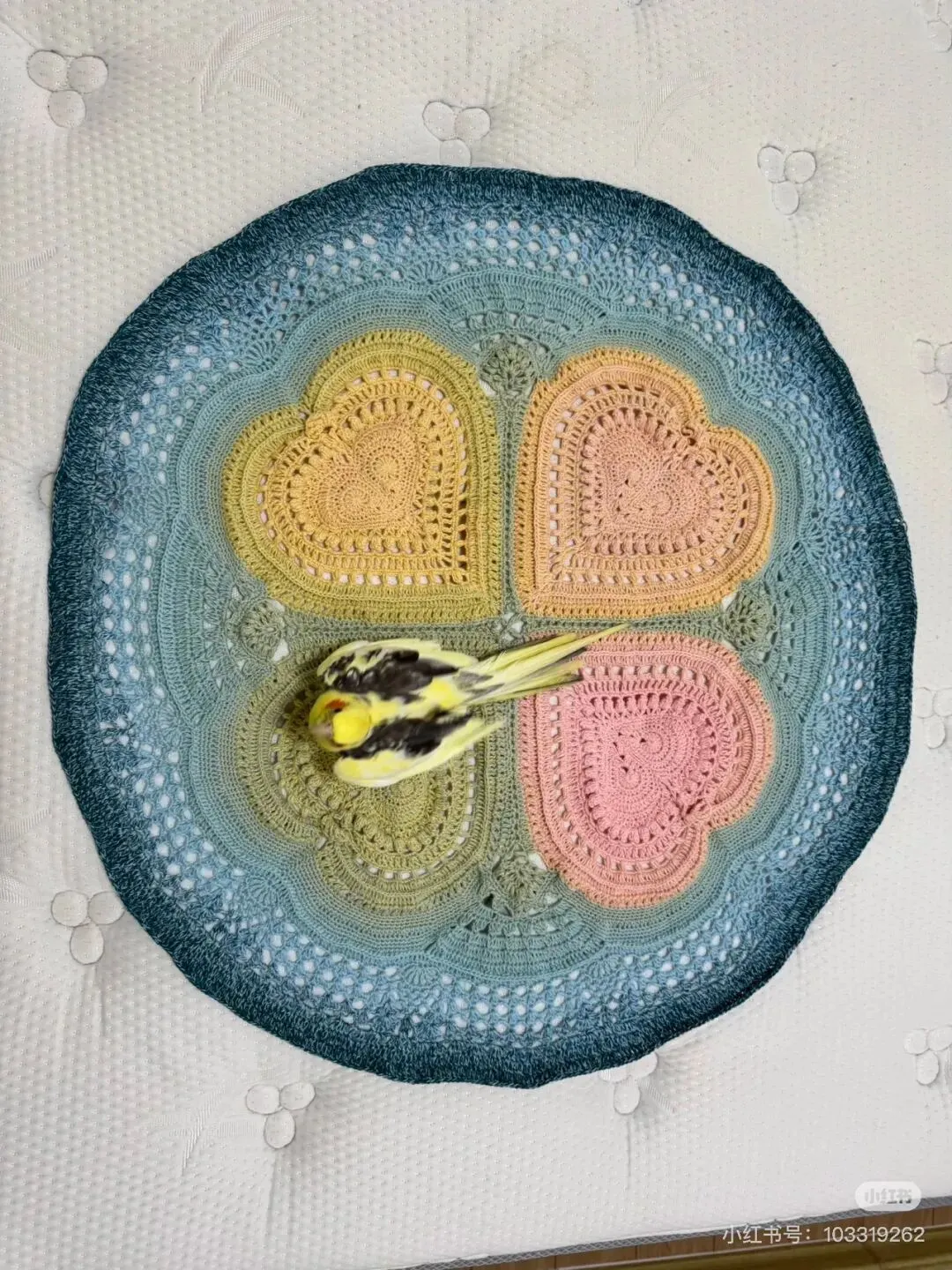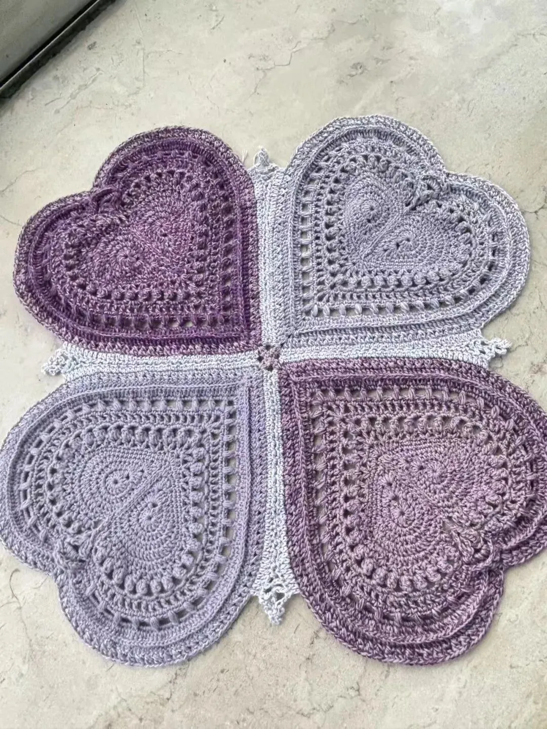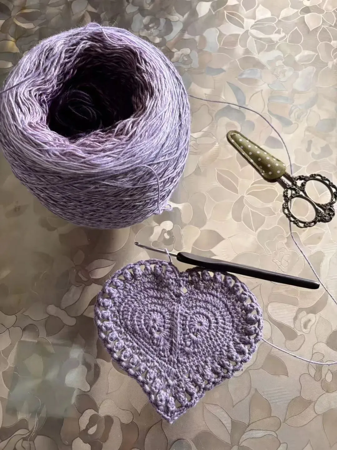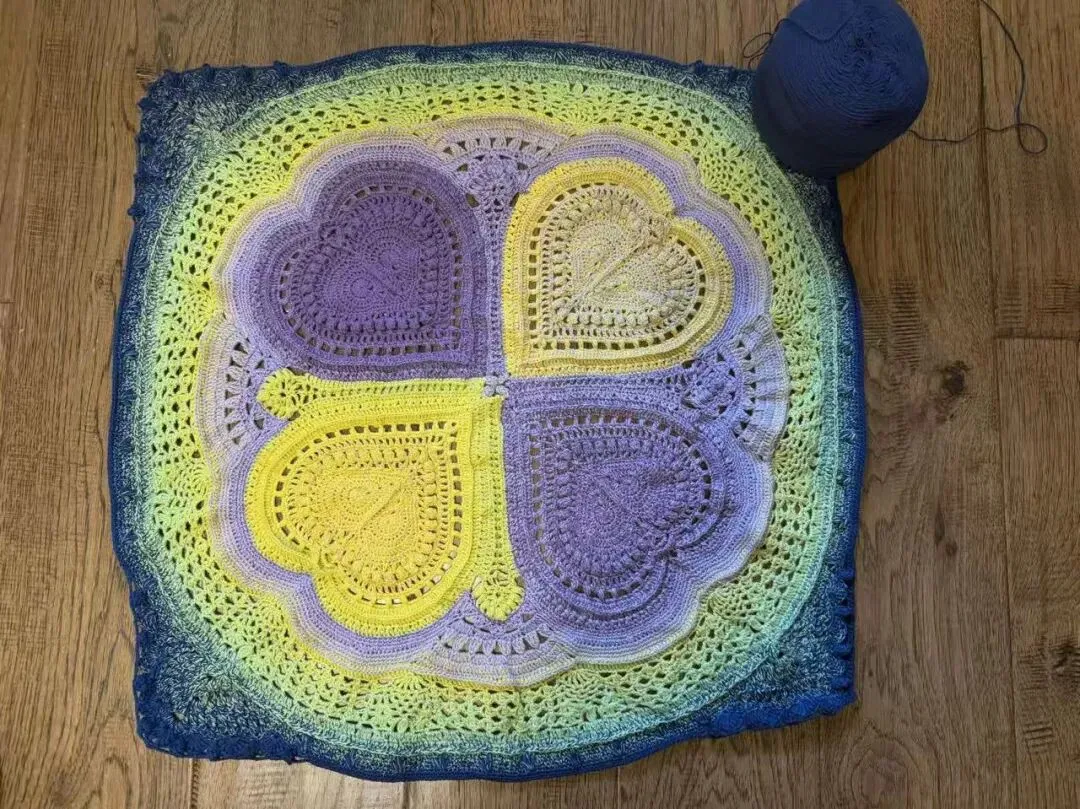物喜恋爱花园曼陀罗垫子(又名四颗心,画了中文符号图解买线送)。潘多拉最适合钩各种小垫子,一团一个有剩余。买线进群玩。