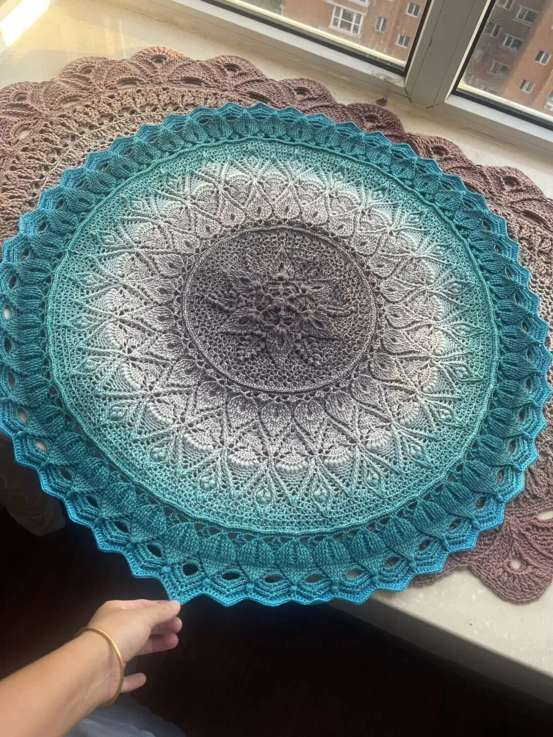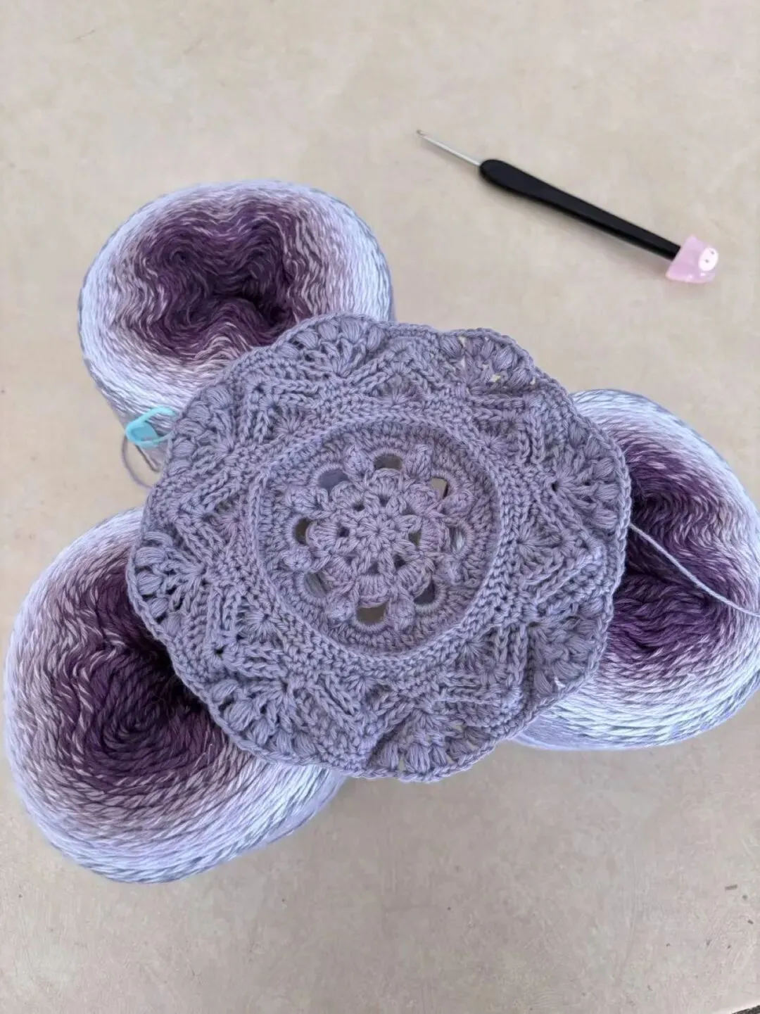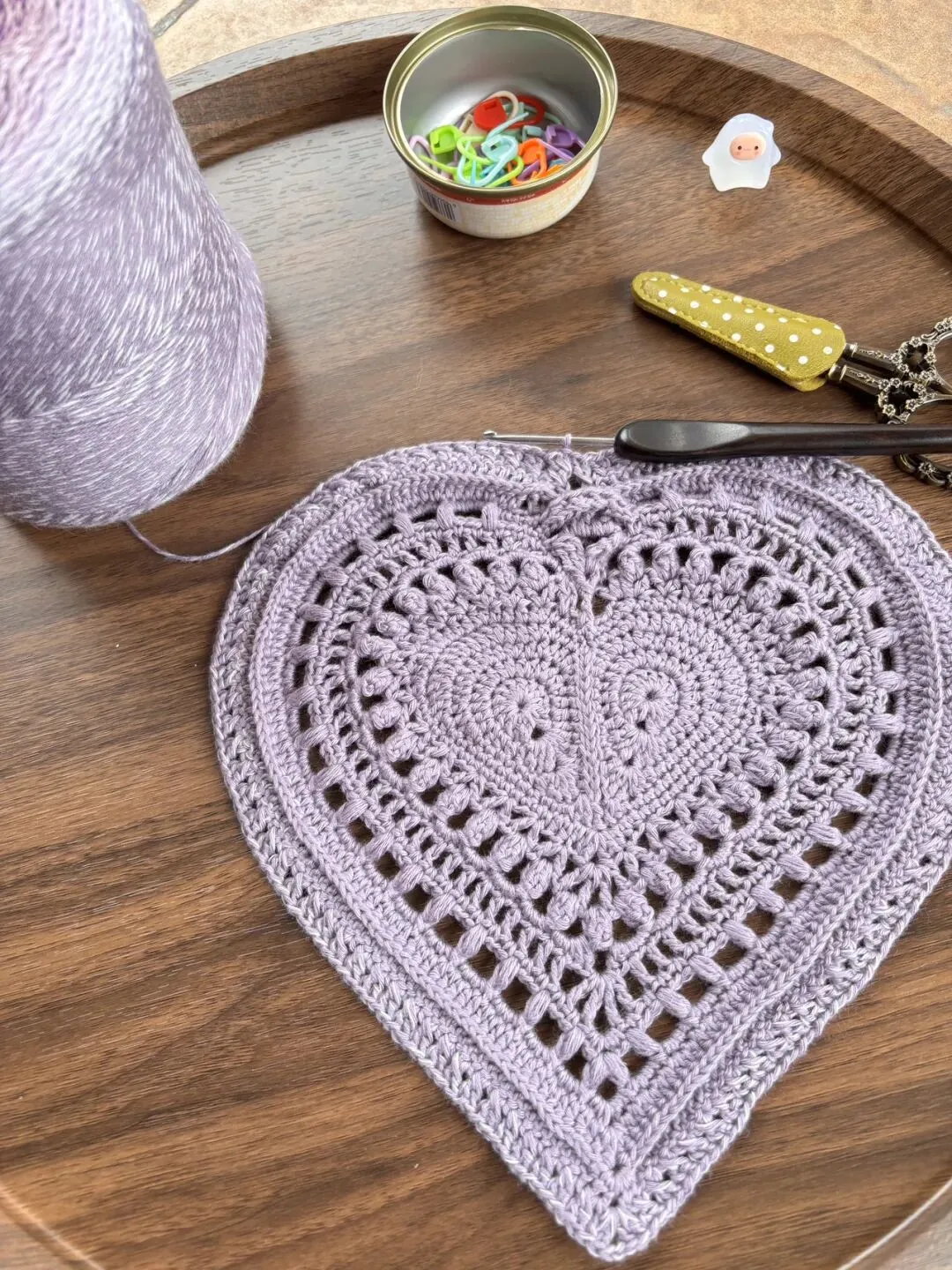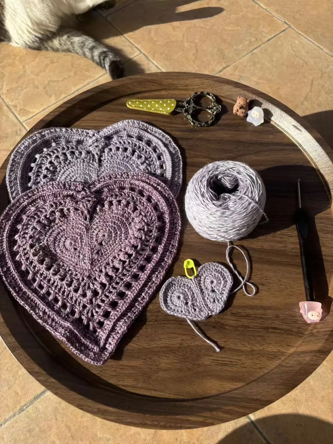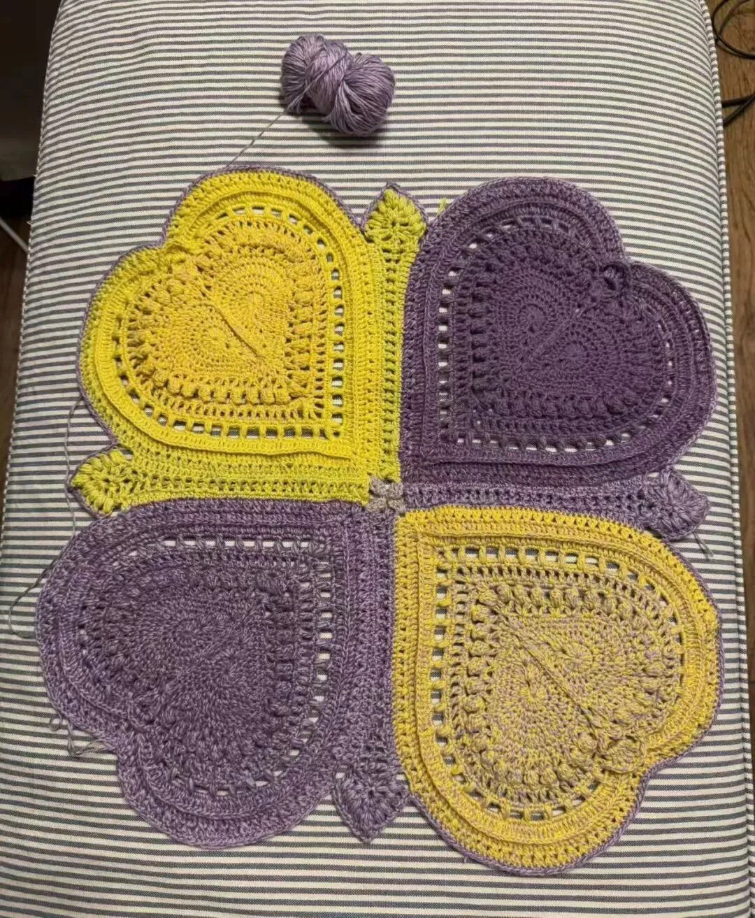 物喜恋爱花园曼陀罗垫子(又名四颗心,画了中文符号图解买线送)。潘多拉最适合钩各种小垫子,一团一个有剩余。买线进群玩。