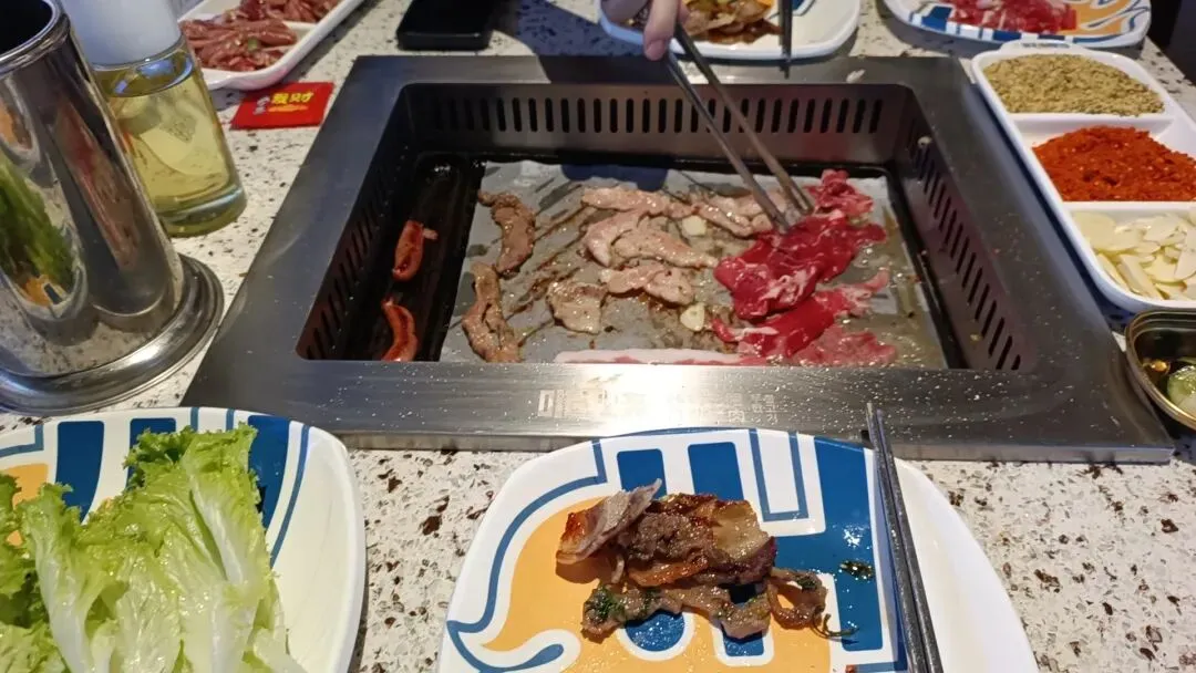 男朋友下班回家之后,我们又去吃了自助烤肉,不知道是不是吃的蒜片太辣,吃完之后好久我的嘴巴都是涩涩的,不得劲,喝了好多水也不管用。