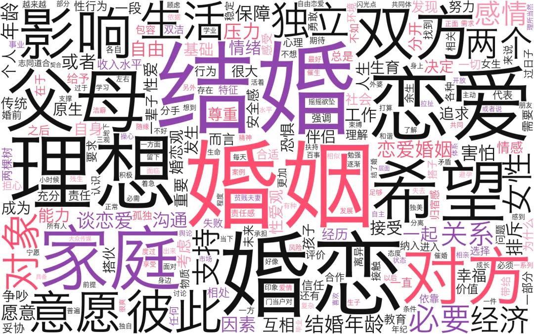 恋爱、婚姻、生育意愿的阶梯下降,源于与三者相关的责任递增、风险递增、自主性递减。多位受访者将恋爱视为情感支持的重要来源,但对进入婚姻保持审慎。恋爱更多发生在两个人之间,而婚姻意味着进入两个家庭的结构之中,需要承担更复杂的现实事务。生育则进一步叠加了不可逆的身体代价与长期养育责任,加深对婚姻的犹豫。关于恋爱经历是否会改变婚育观,访谈者普遍认为其更多起到验证与微调的作用,而非重塑观念。婚育观念的底色较早形成,此后的亲密关系更像是在现实中检验这套判断是否可行。