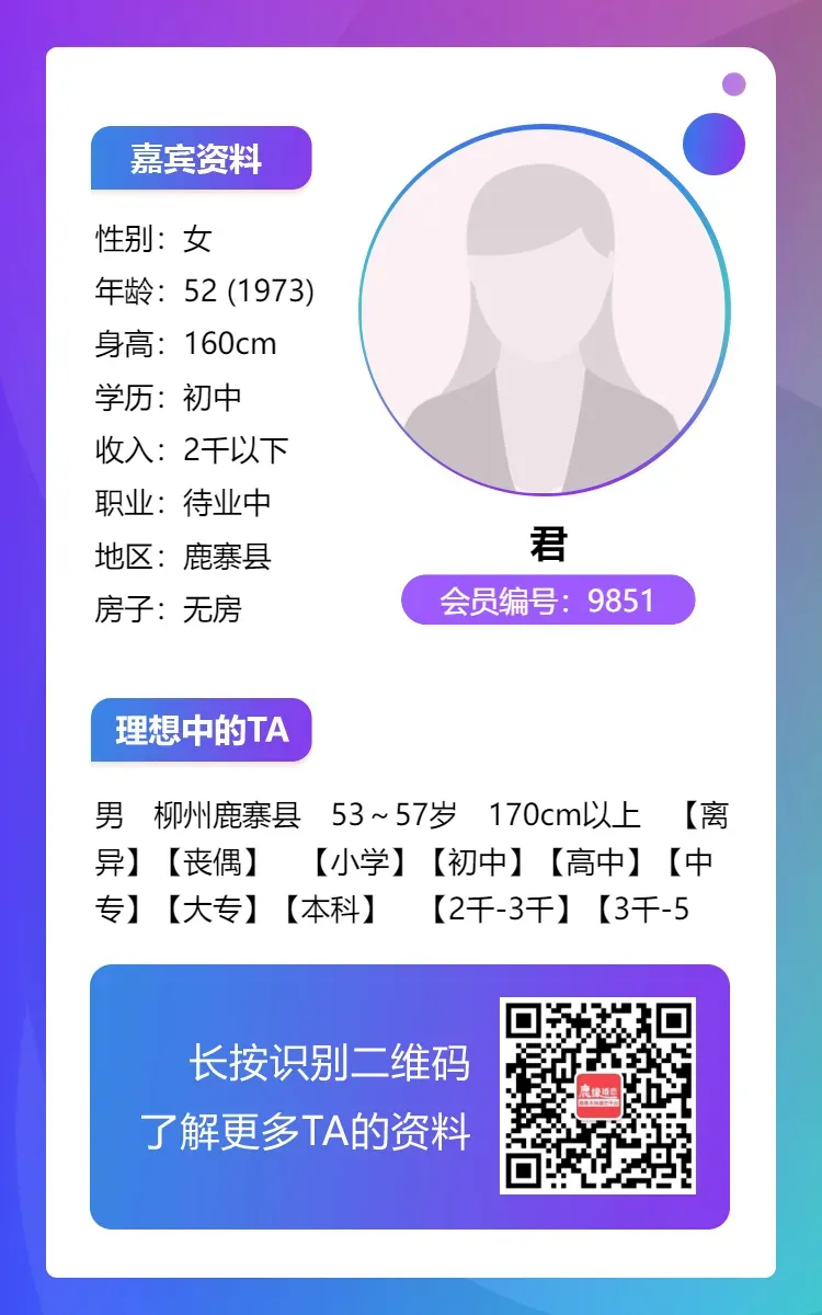 【鹿缘婚恋】1973年鹿寨姐姐,160CM,内附详细资料