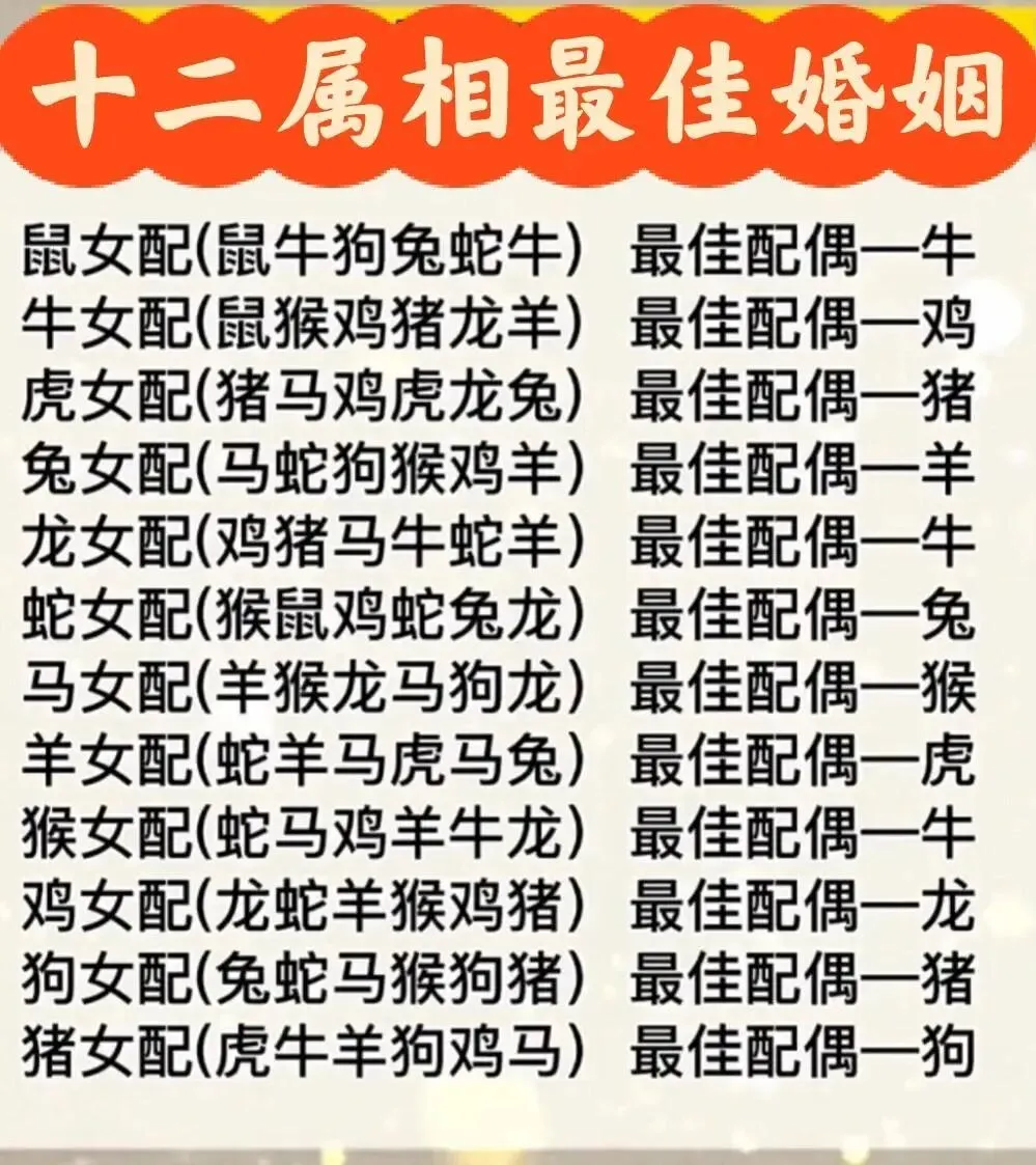 属相搭配仅供一乐,真正的“神仙组合”全靠互相体谅、相互包容!祝各位夫妻把日子过成段子,越吵越甜。