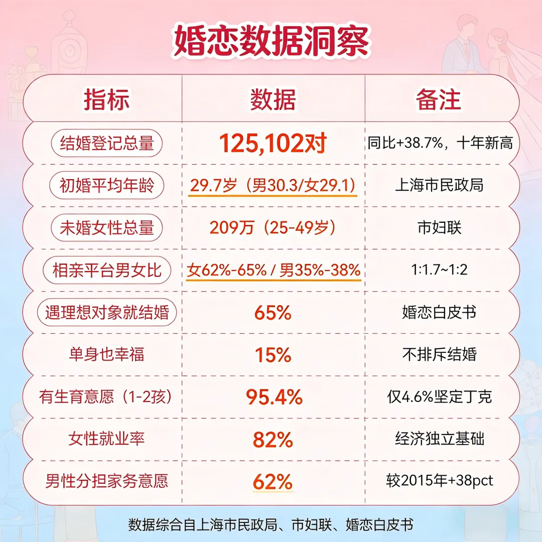 👉 市区:极简务实,无彩礼、重独立,父母不插手小家庭,择偶看个人素质不看地域👉 郊区:传统不古板,彩礼象征性收了全返,可短期和父母同住,看重家庭氛围和人品本质都是为小家庭铺路,形式不同,初心一样~总结✨ 上海婚恋:清醒不焦虑,务实也浪漫