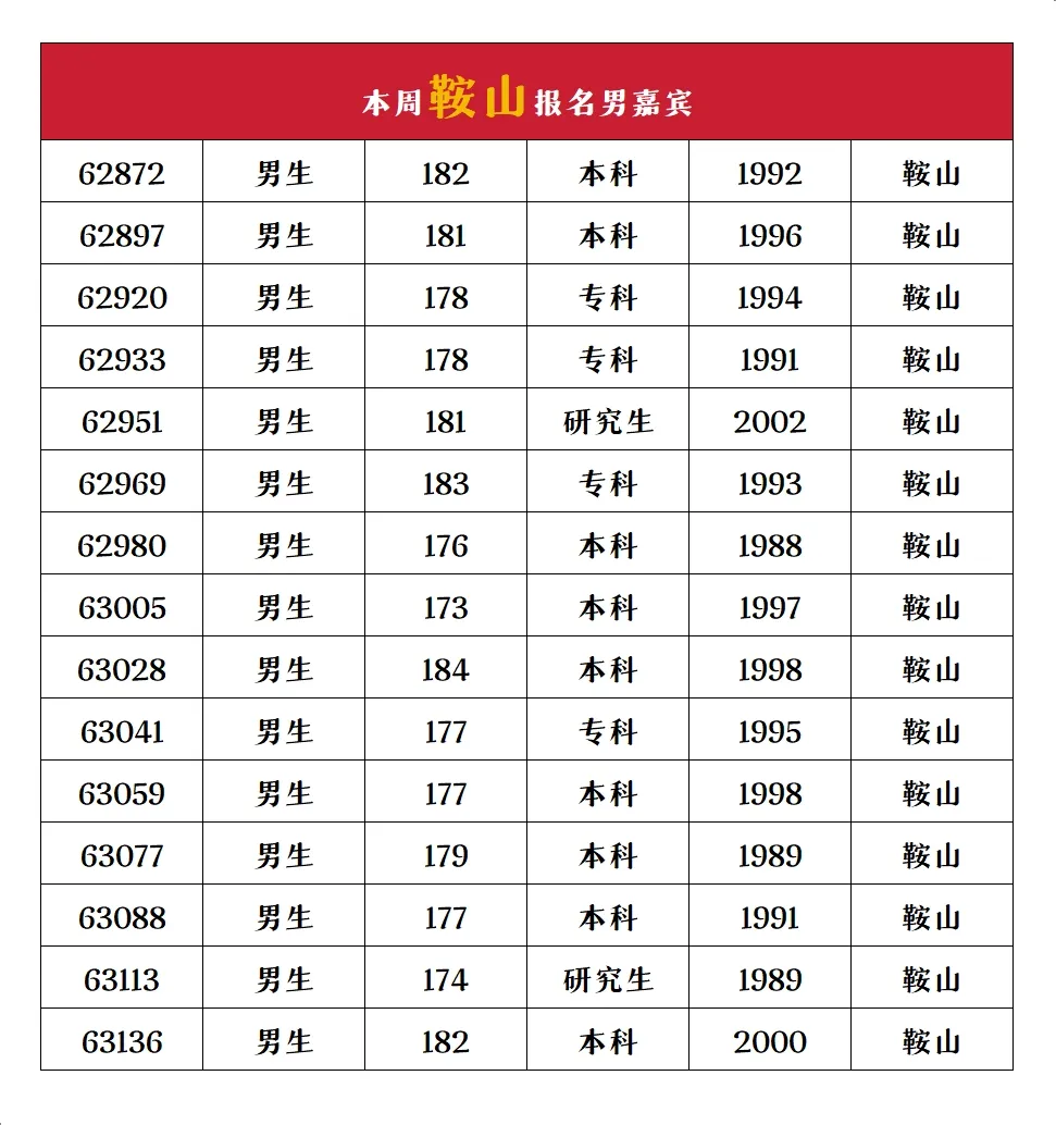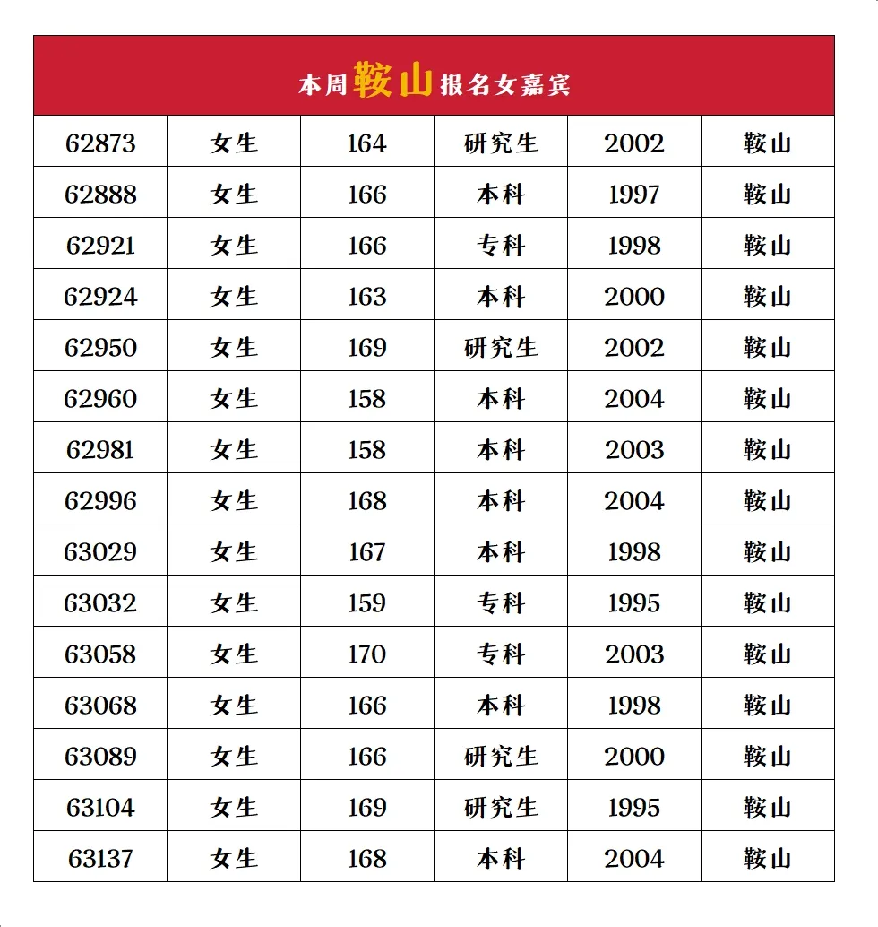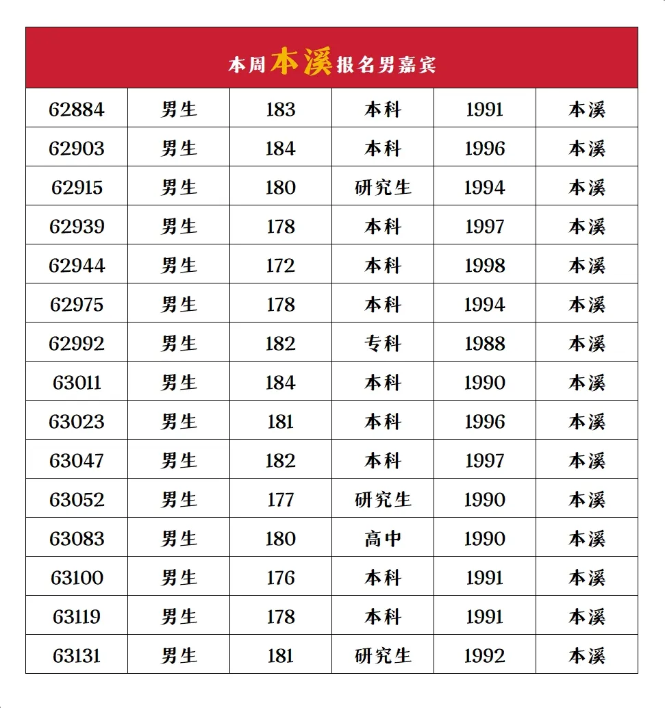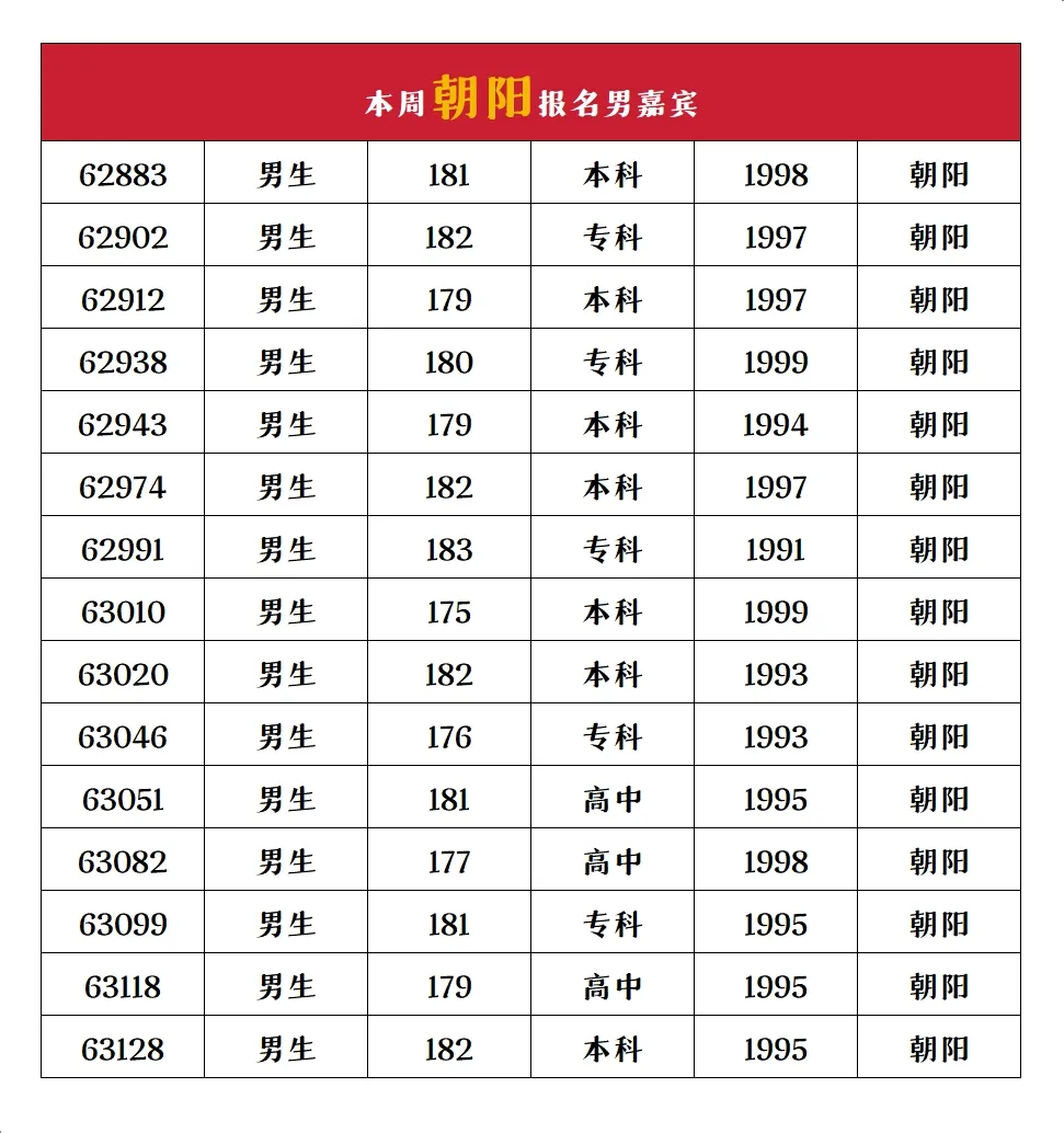 本期恋爱匹配已报名嘉宾,篇幅有限,每个城市仅展示部分嘉宾,目前辽宁开放城市:沈阳、大连、鞍山、盘锦、锦州、营口、朝阳、本溪、抚顺