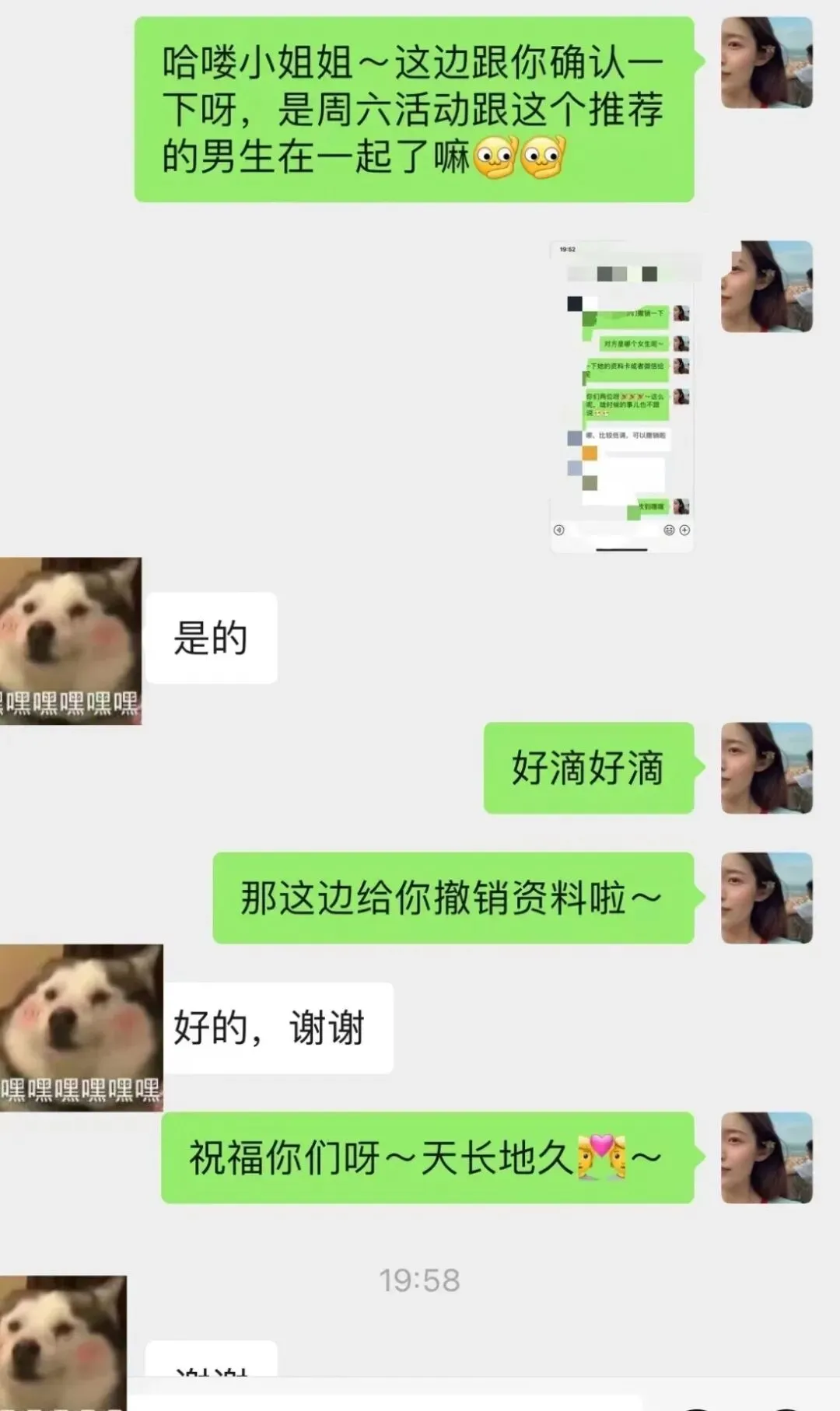 2.匹配原则:我们会通过人工筛选与算法匹配,综合:收入情况、有无房车、身高、学历、颜值等多维度因素筛选出与您信息最相符的异性进行CP匹配。