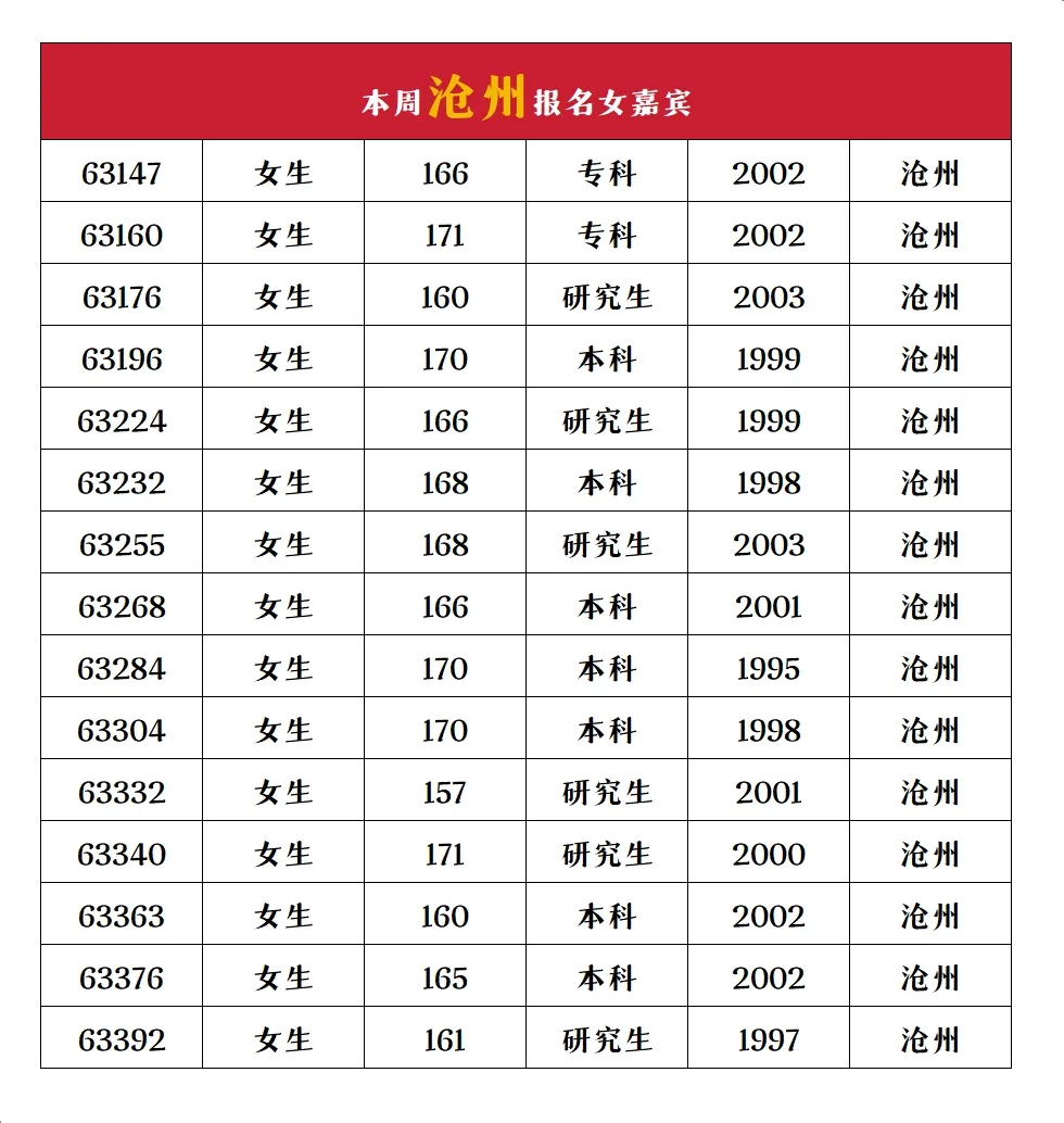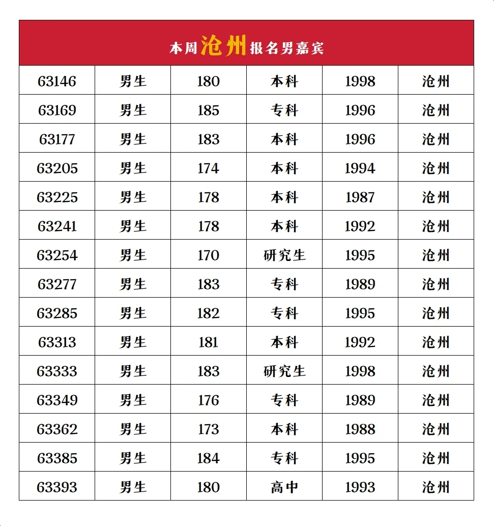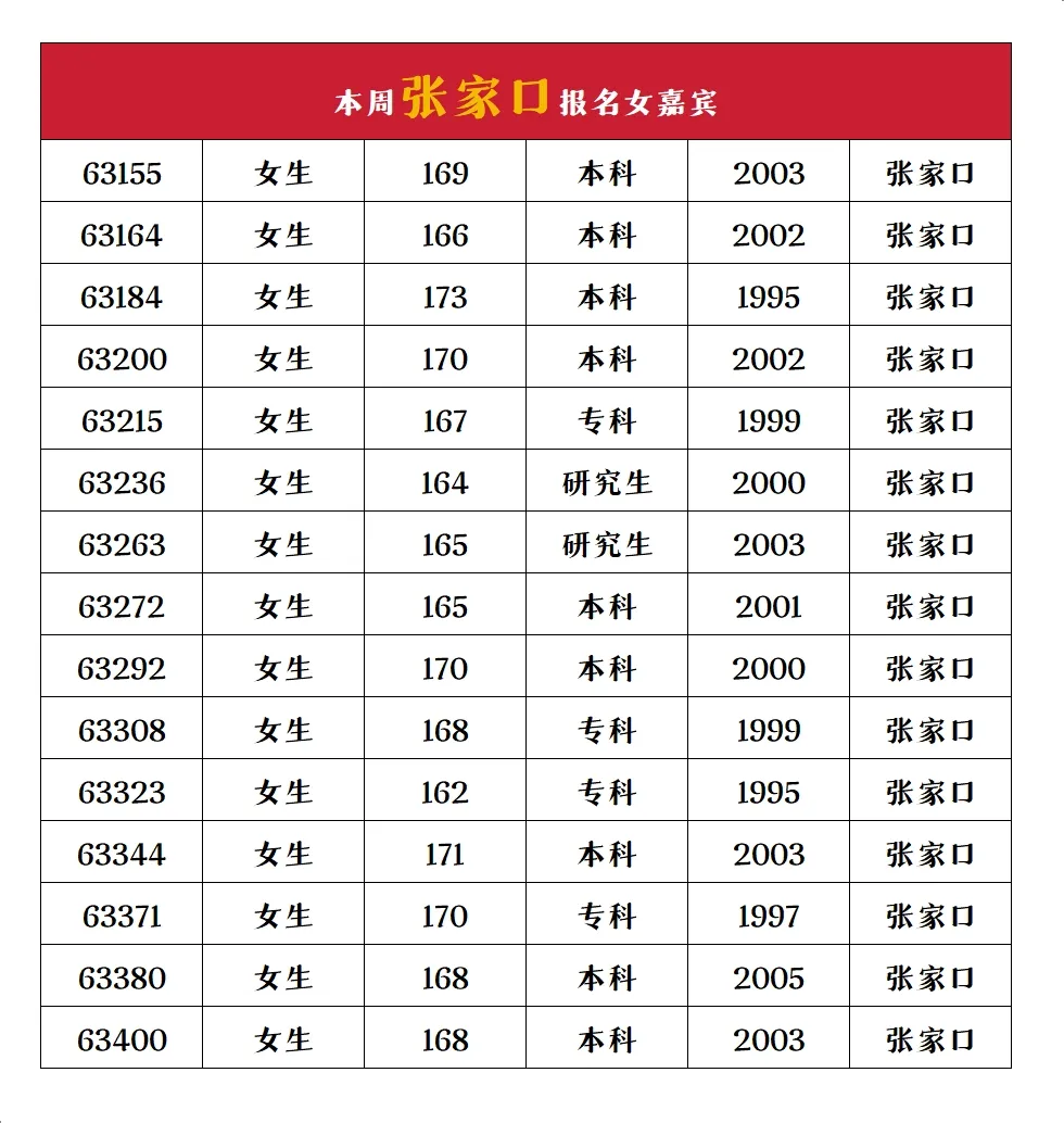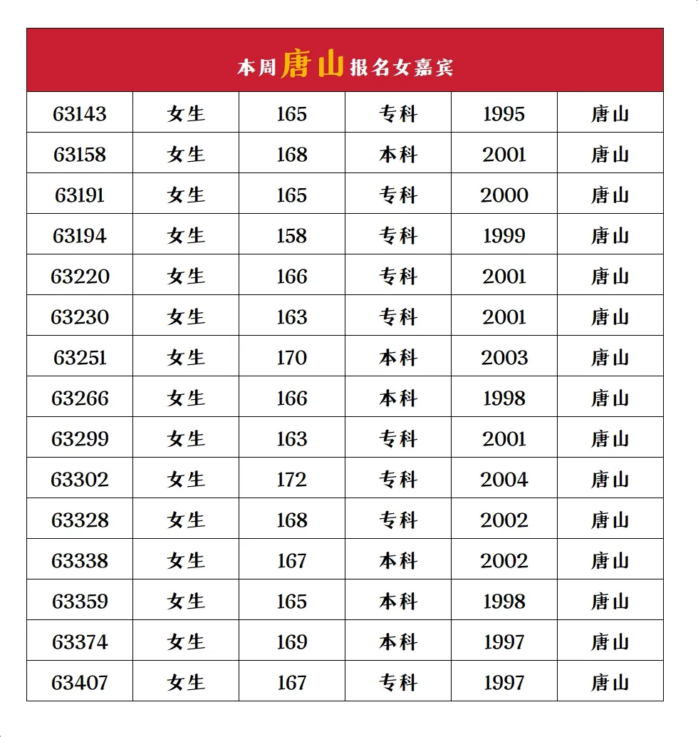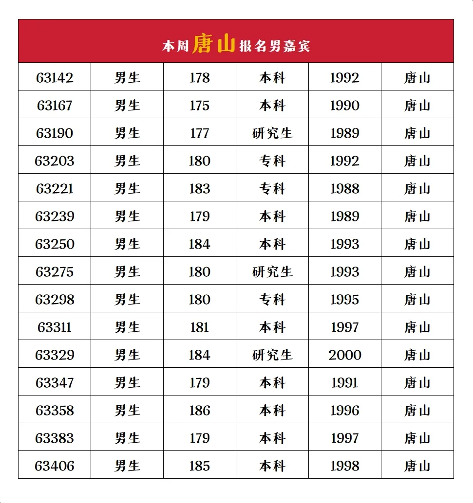 本期恋爱匹配已报名嘉宾,篇幅有限,每个城市仅展示部分嘉宾,目前河北开放城市:石家庄、保定、唐山、邯郸、沧州、邢台、廊坊、衡水、张家口。