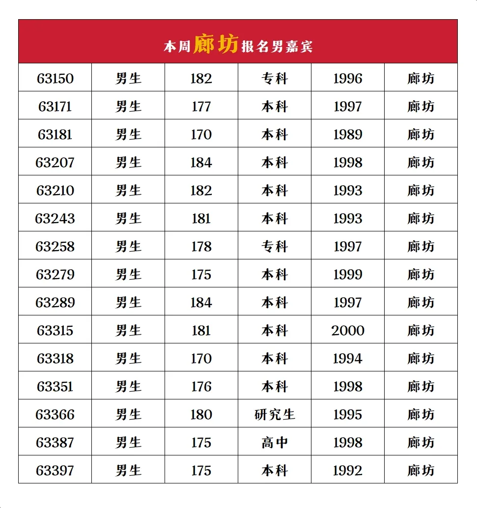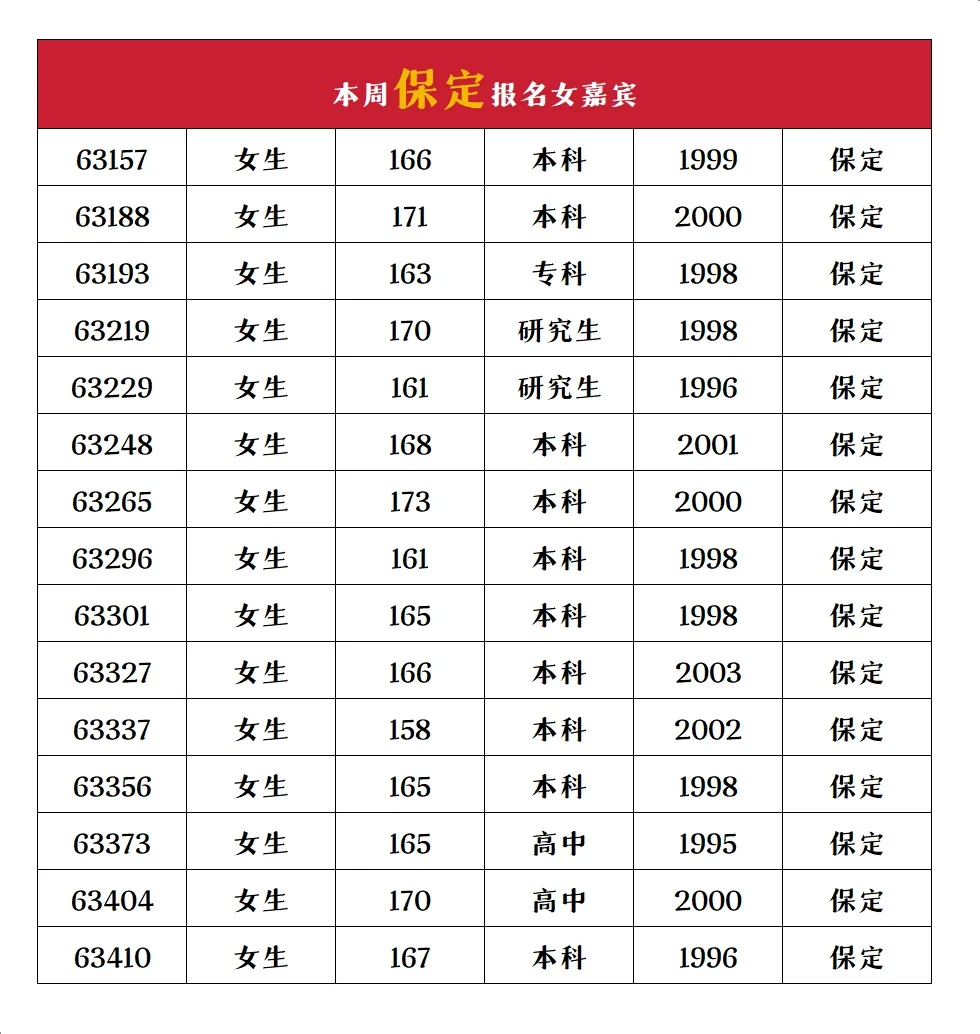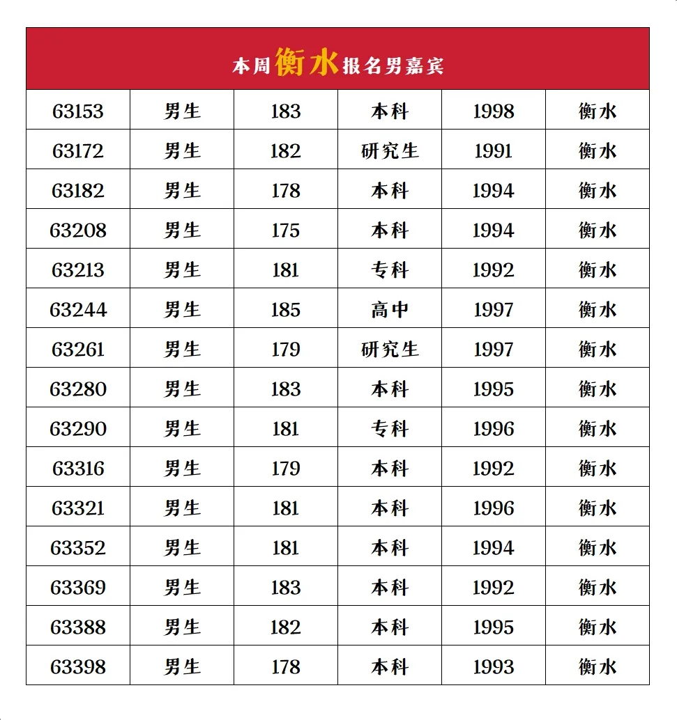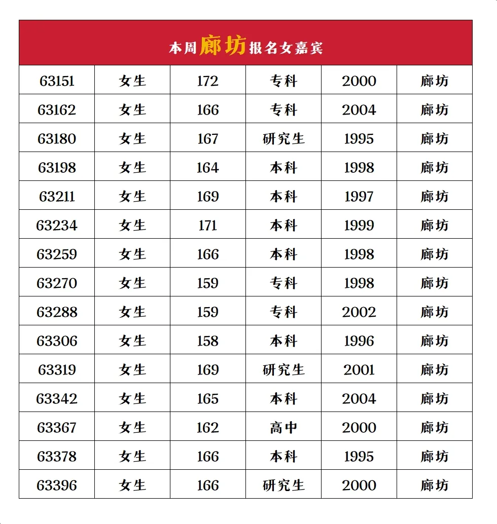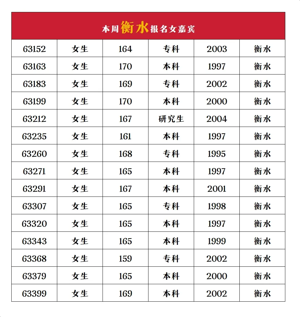 本期恋爱匹配已报名嘉宾,篇幅有限,每个城市仅展示部分嘉宾,目前河北开放城市:石家庄、保定、唐山、邯郸、沧州、邢台、廊坊、衡水、张家口。