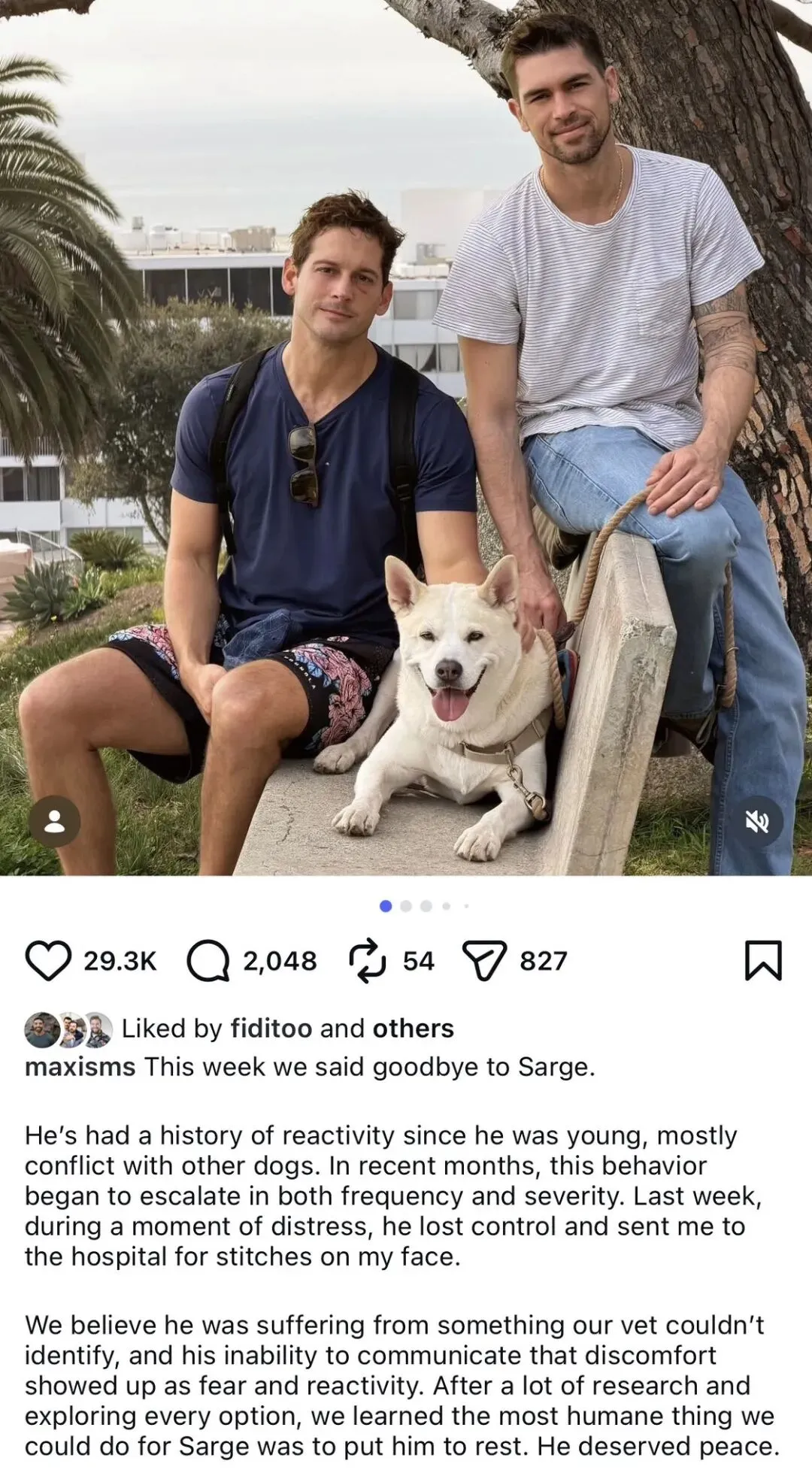 前几年,网络恋爱博主Max Emerson 和结婚多年的丈夫Andrés Camilo离婚宣布分开,但承诺要一起继续抚养他们的狗。