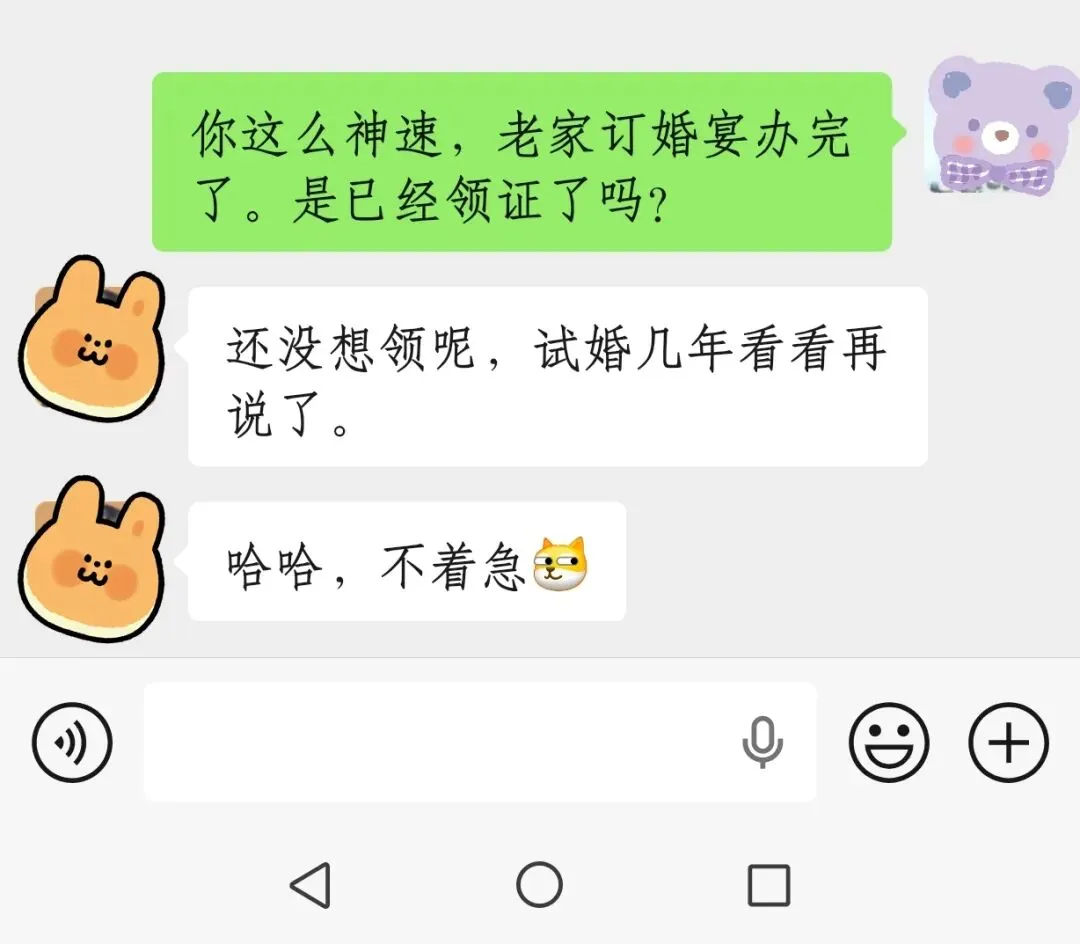 我身边更有一对,认识不到半年,双双上岸后,应届生女生直接主动提出结婚。那一刻我忽然恍惚:原来,结婚也可以这么快、这么直接、这么顺理成章。