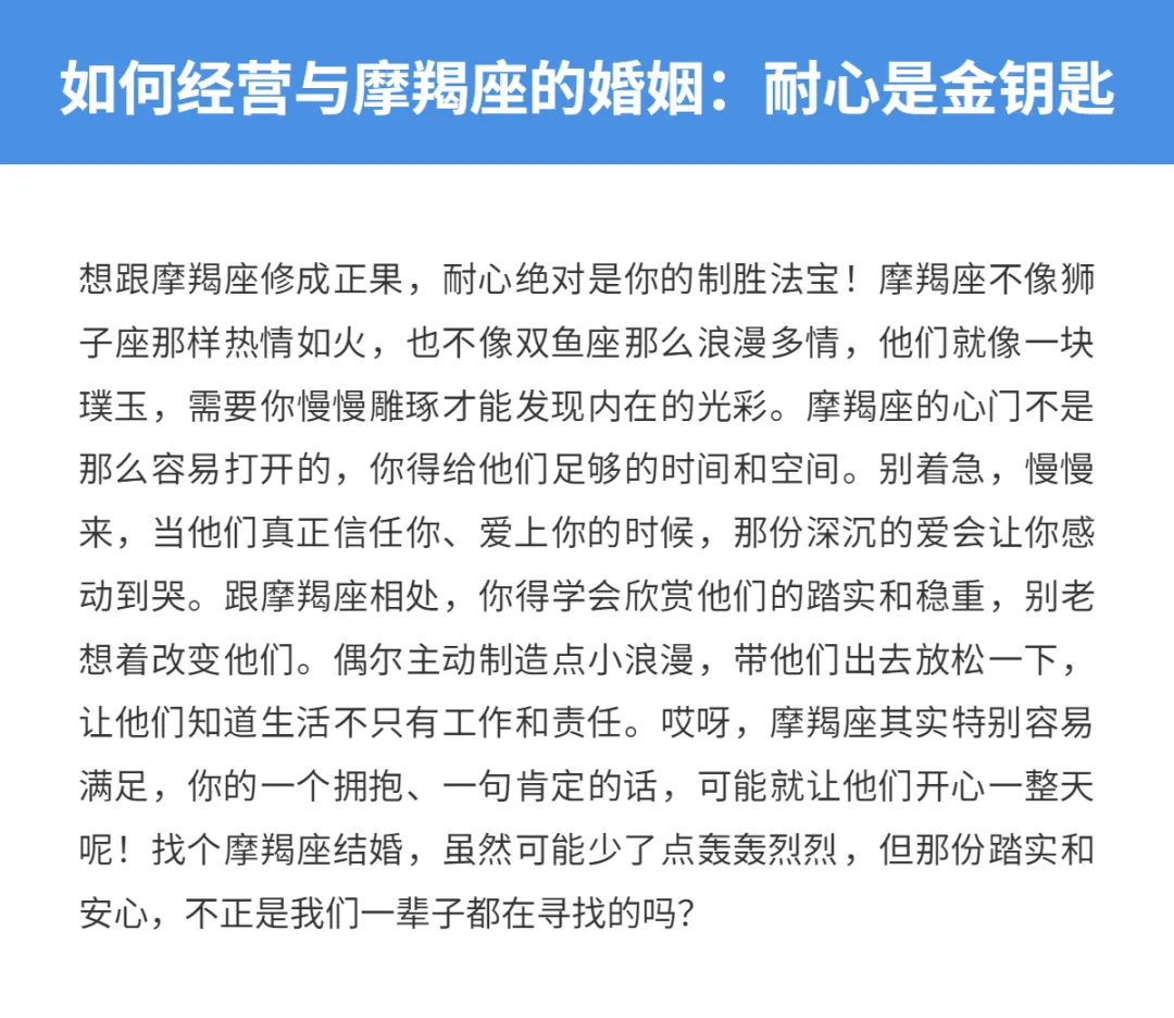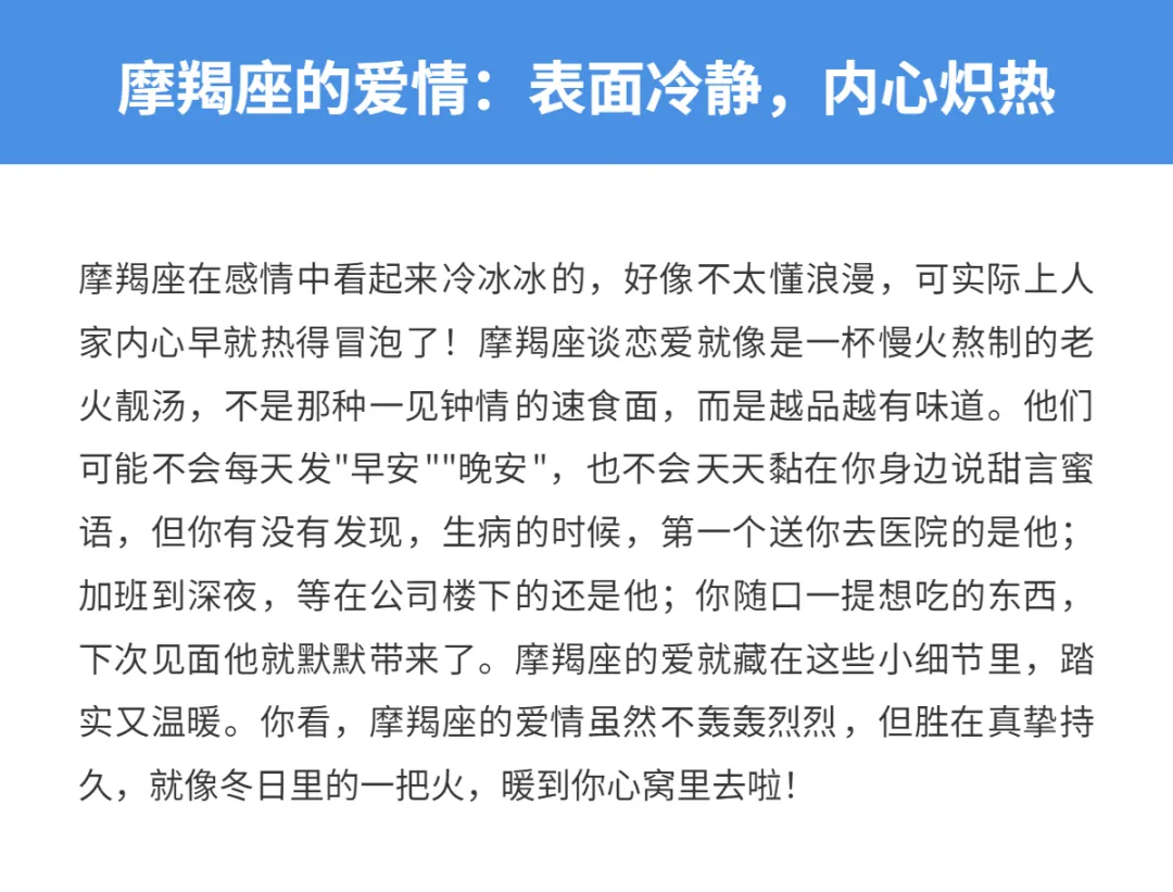 亲爱的星座朋友们,今天咱们来聊聊摩羯座的婚恋那些事儿。你是不是觉得摩羯座就是工作狂,不懂浪漫,婚后生活枯燥无味?那你可就大错特错啦!跟摩羯座谈恋爱、结婚,可不仅仅是看中他们稳定靠谱的性格哦。摩羯座的另一半,简直就像挖到了宝藏,只不过这个宝藏需要你慢慢发掘。今天就让我带你一起揭开摩羯座婚恋生活的神秘面纱,看看跟他们组建家庭到底有啥好处,又该怎么跟这个表面冷淡内心火热的星座相处呢?