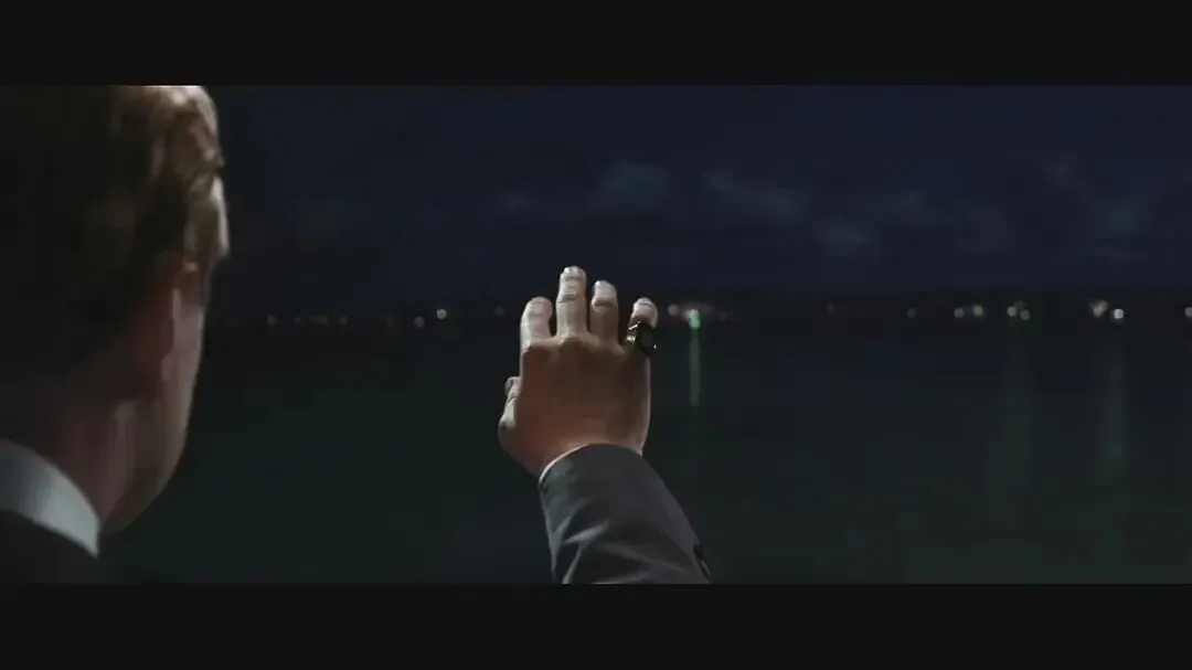 这场面拍得太美了。盖茨比指着对岸那盏绿灯,跟黛西说这话的时候,手伸出去想抓住什么。那绿灯是啥?是他五年来的念想,是他觉得只要伸手就能够着的幸福。