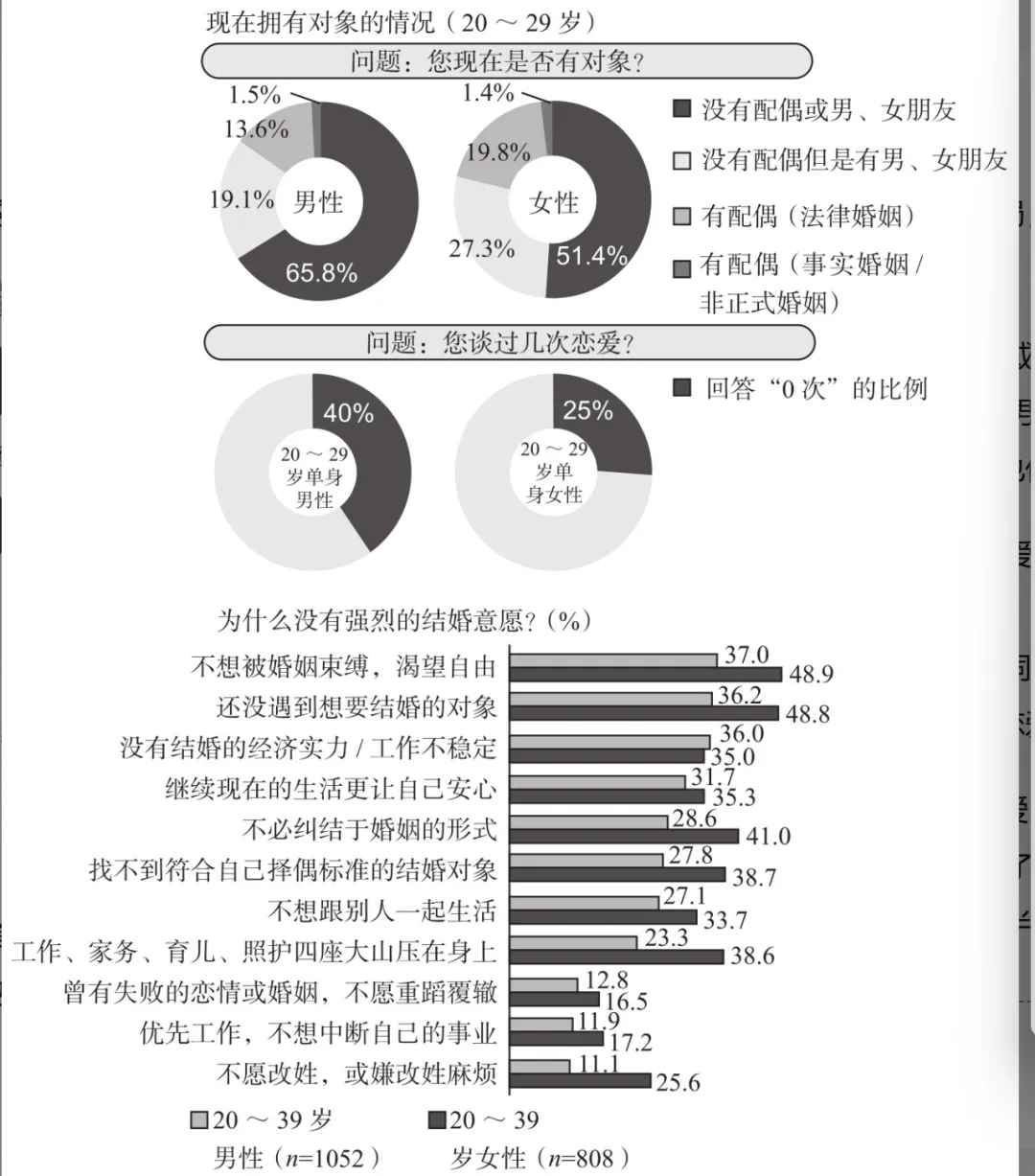 20~29岁的单身群体中,没有男、女朋友的人数过半,甚至有四成的男性从未谈过恋爱
