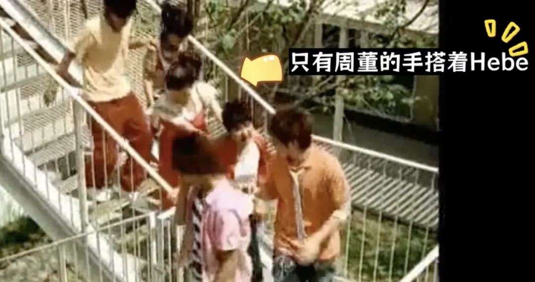 MV里,他对Hebe有一个亲昵的勾肩动作。