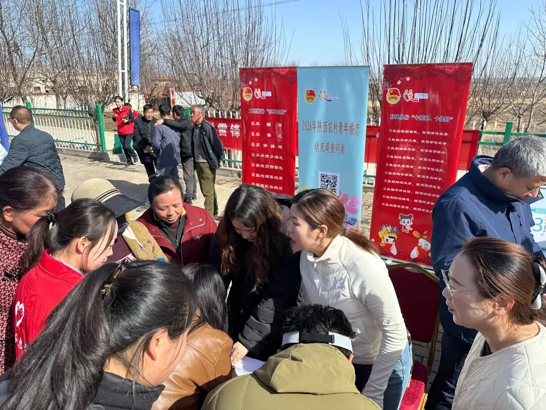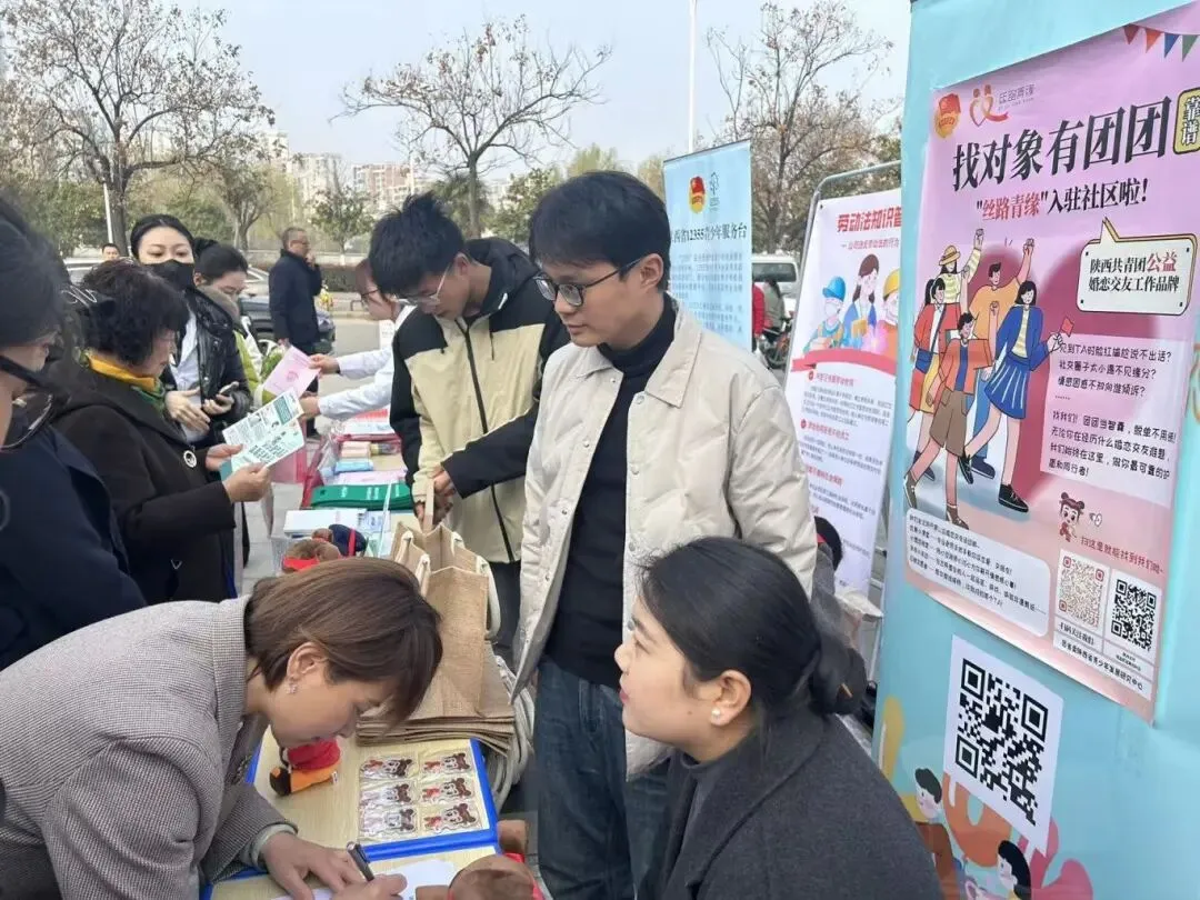 在西安市灞桥区联盟社区,“丝路青缘”志愿服务队将培育和践行社会主义核心价值观贯穿于服务青年婚恋交友工作,积极宣传国家婚育政策和措施,细心讲解团组织公益婚恋服务的内容,组织单身青年有序填写青年婚恋状况电子调查问卷和“丝路青缘”婚恋交友活动报名表,发放“丝路青缘”婚恋品牌文创产品;在铜川市宜君县东村活动现场,通过向村民发放、展示《文明婚俗“四不三拒”》《移风易俗“十抵制、十提倡”》等宣传产品和海报,大力弘扬新时代文明婚俗新风尚,倡导新型婚育文化,抵制高额彩礼等不良婚俗陋习,营造文明、健康、向上的精神风貌,同时收集农村青年婚恋需求,为团组织更好联系服务青年留存“第一手”数据资料。