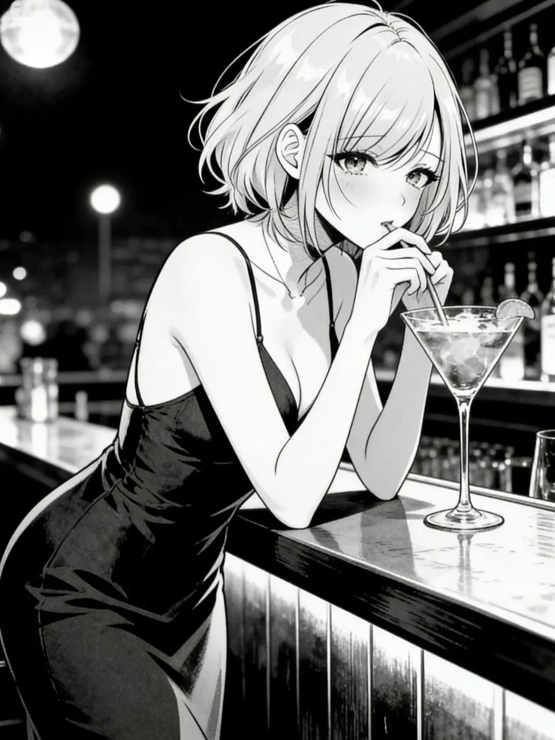 与露露的冷峻截然不同,她像一杯加冰的玛格丽特。金色短发,吊带黑裙,靠在吧台边用吸管轻咬柠檬片。她走过来时,香水味先一步抵达。