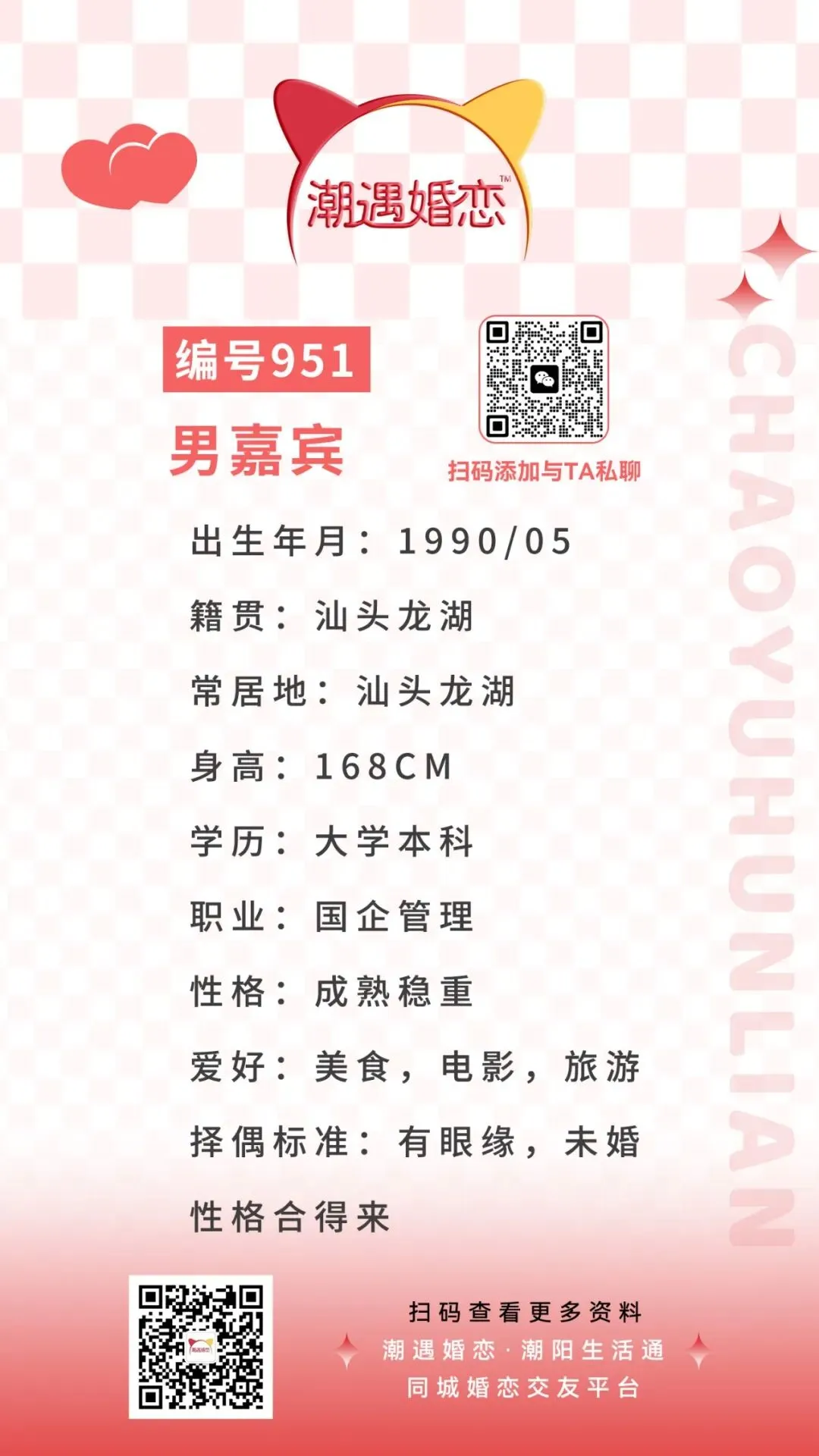 潮遇婚恋|(编号951)汕头男子,90年,择偶标准…
