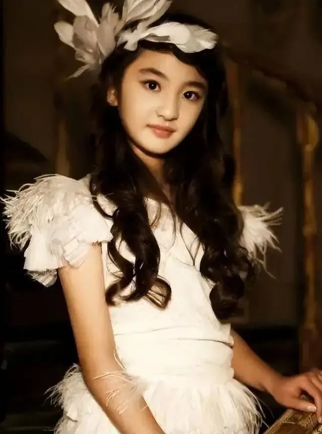 照片中,张千巽身穿拖地洁白婚纱,虽然只露出了半张脸,依旧能够看出她长大后的模样。