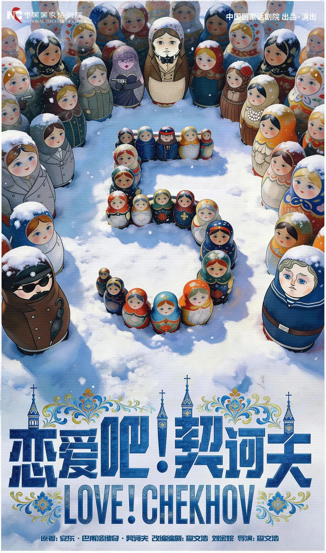 《恋爱吧!契诃夫》的改编编剧、导演查文浩,通过研读契诃夫近百万字的小说、剧本、传记,以“谜一样的爱情”为切入点,将《蠢熊》《求婚》《婚礼》三部独幕剧并置融合,并将《捉弄》《套中人》《新娘》《关于爱情》多部小说中著名的人物和故事揉入其中,构筑出“契诃夫平行宇宙”。