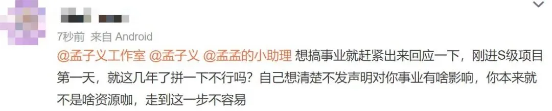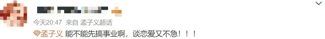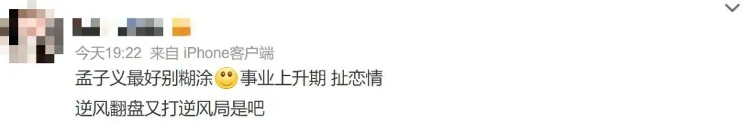 除了看热闹的人群,热评里还有孟子义的事业粉,她们不关心这些后知后觉的恋爱糖,而只想提醒偶像: