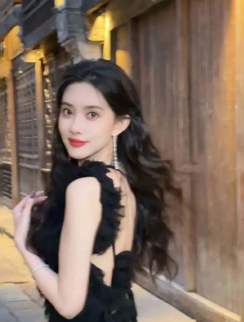 一袭黑裙清冷美艳,宛如高贵的黑天鹅。