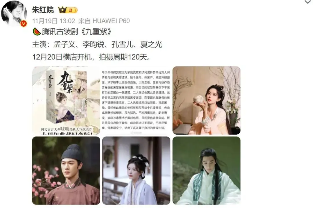 还将作为一番女主出演古装剧《九重紫》,搭档凭《星汉灿烂》《封神》走红的新晋古装帅哥李昀锐