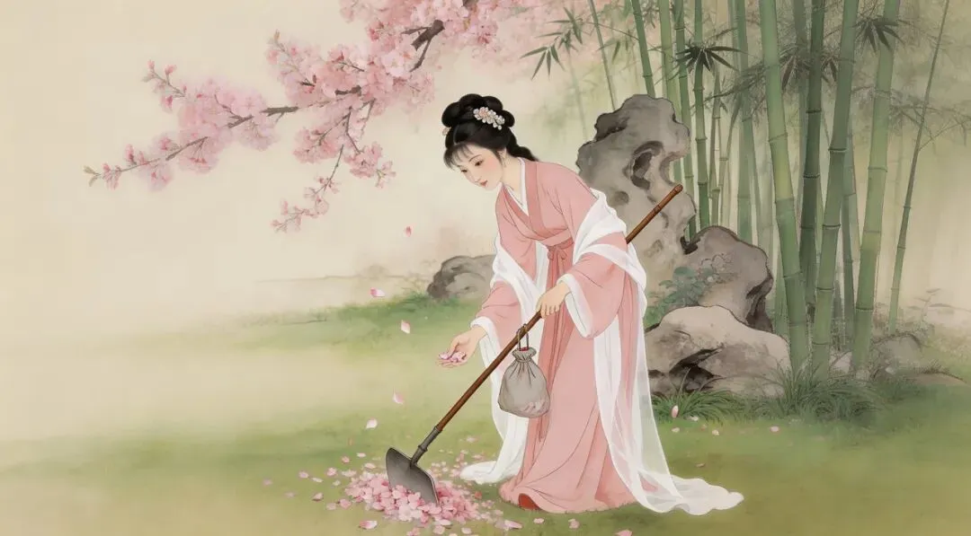 《红楼梦》里有一个场景。春天的园子里,花一瓣一瓣落下来,林黛玉蹲在地上,把那些落花一点点收起来,然后埋进土里,一边埋花一边落泪。那时,正是暮春最伤感的季节,她葬的是又落花。很多人读到这里,会觉得她太痴情、太可怜。后来我发现,这一幕其实早已经写出了她一生的命运。她的世界太小,小到只剩下一件事:爱情。一个人一旦把人生全部押在爱情上,结局往往不会太好。